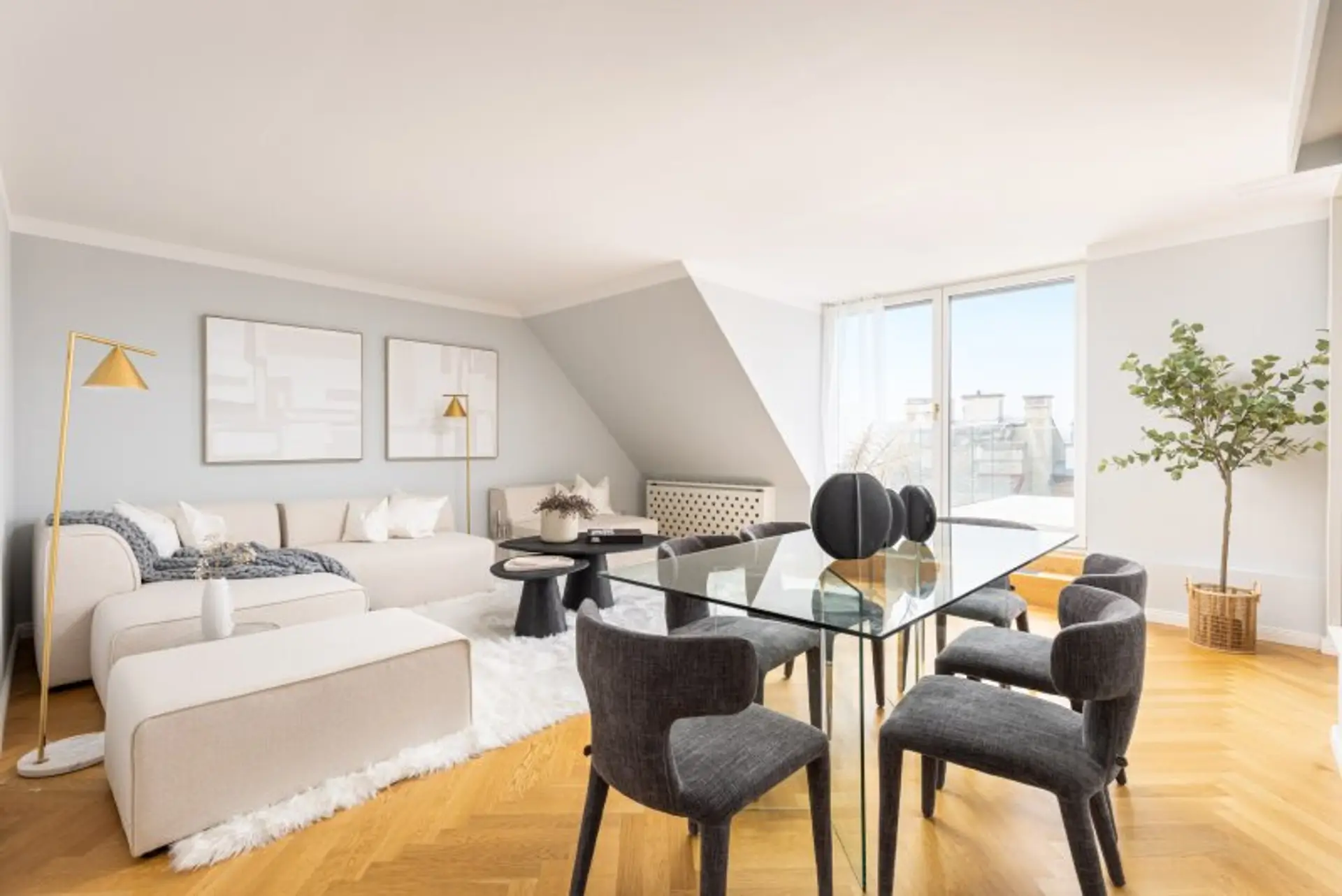 Zum Verkauf gelangt eine luxuriöse Penthouse-Wohnung mit großer Dachterrasse im beliebten 4. Bezirk. Das gesamte Gebäude wurde liebevoll generalsaniert und das Dachgeschoß neu aufgebaut.