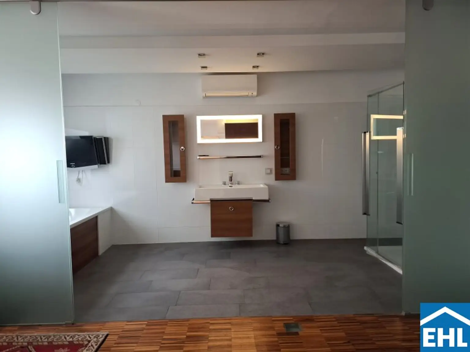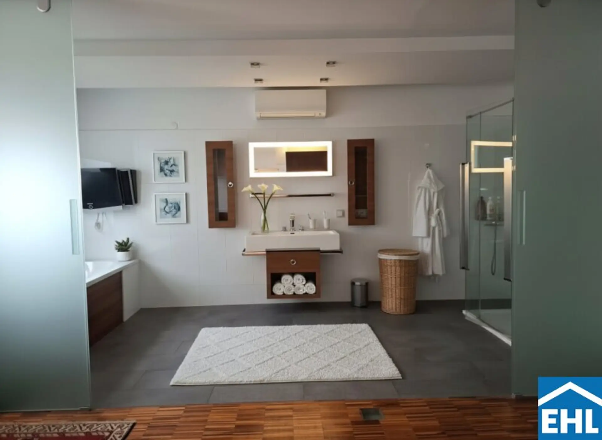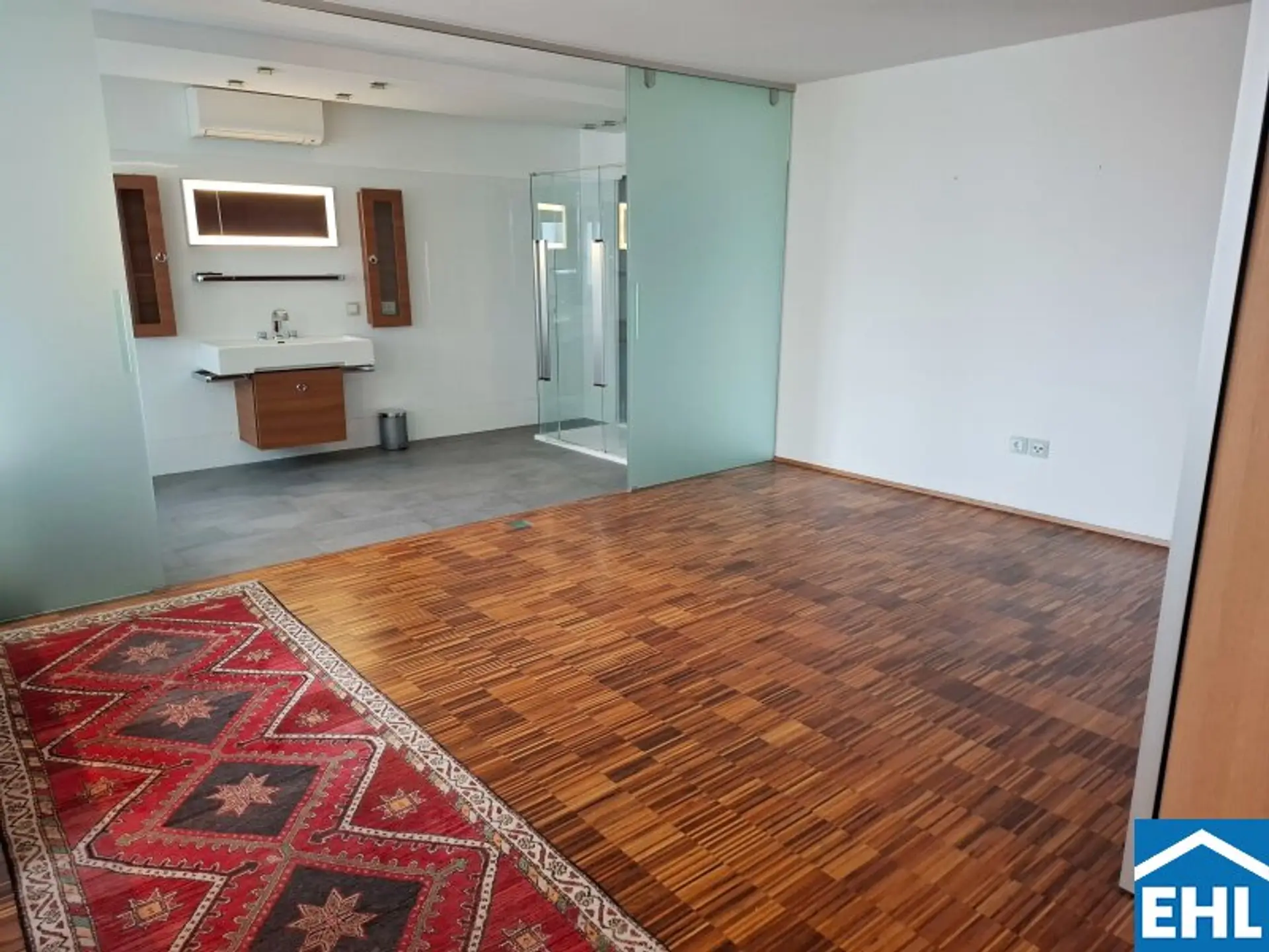 Der Grundriss besticht durch klare Strukturen und fließende Übergänge: Das Schlafzimmer mit elegantem Bad en suite bildet Ihre persönliche Ruhezone. Die Küche mit Essplatz lädt zu stilvollen Abenden ein, während das großzügige Wohnzimmer Raum für Repräsentation, Rückzug und Individualität bietet. Die hochwertige, gepflegte Ausstattung eröffnet durch leichten Renovierungsbedarf die Chance, dem Penthouse eine ganz persönliche Handschrift zu verleihen. Eine Klimaanlage sorgt selbst an heißen Tagen für angenehmen Wohnkomfort, ein ca. 11 m² großer Einlagerungsraum auf gleicher Ebene bietet praktischen Stauraum.
