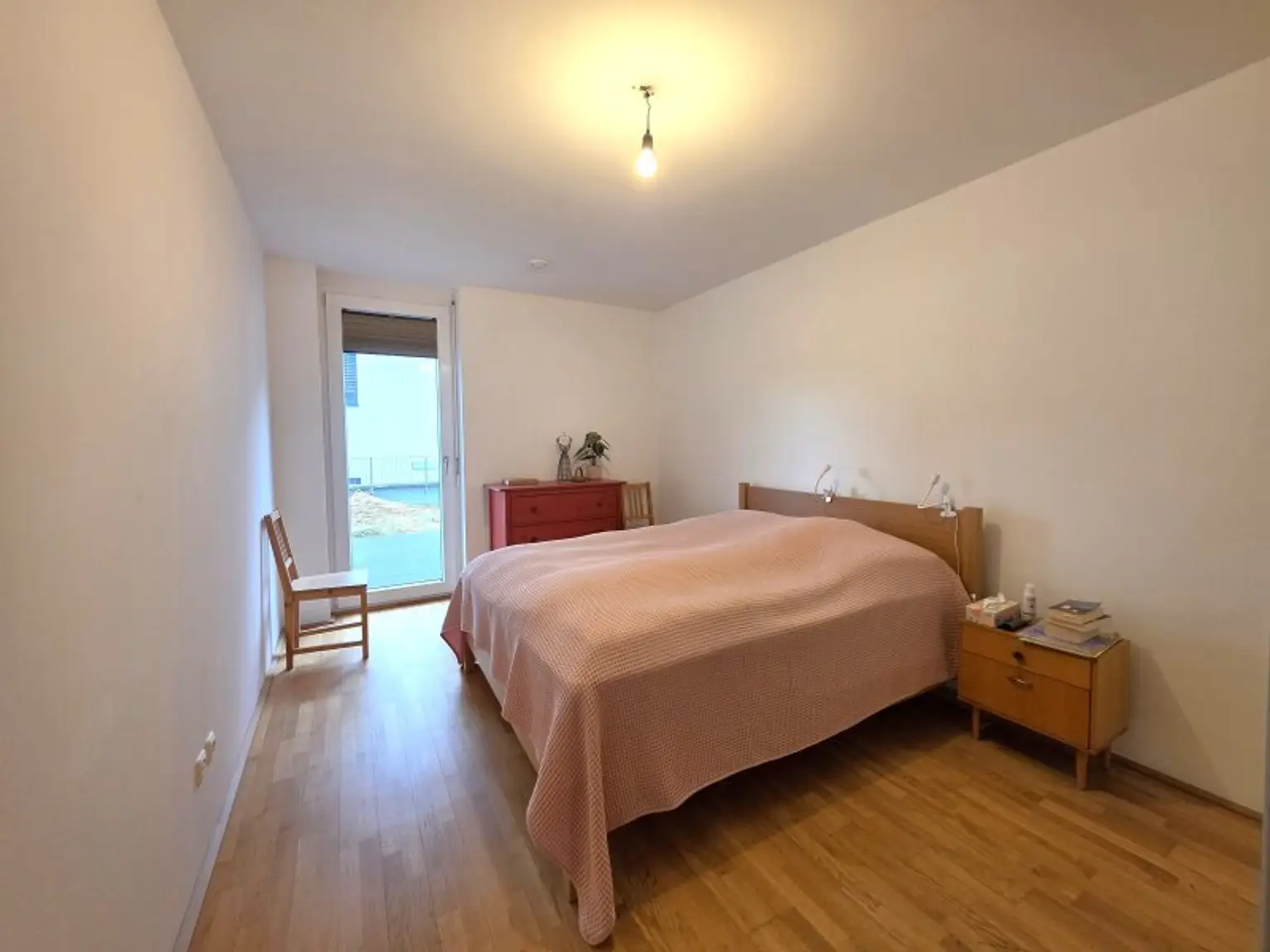 Zwei Schlafzimmer sowie das Badezimmer sind über eine kleine Diele verbunden und separat zugänglich. Diese Raumaufteilung sorgt für zusätzlichen Komfort – besonders wenn Besuch da ist und im Schlafbereich Ruhe gewünscht wird.