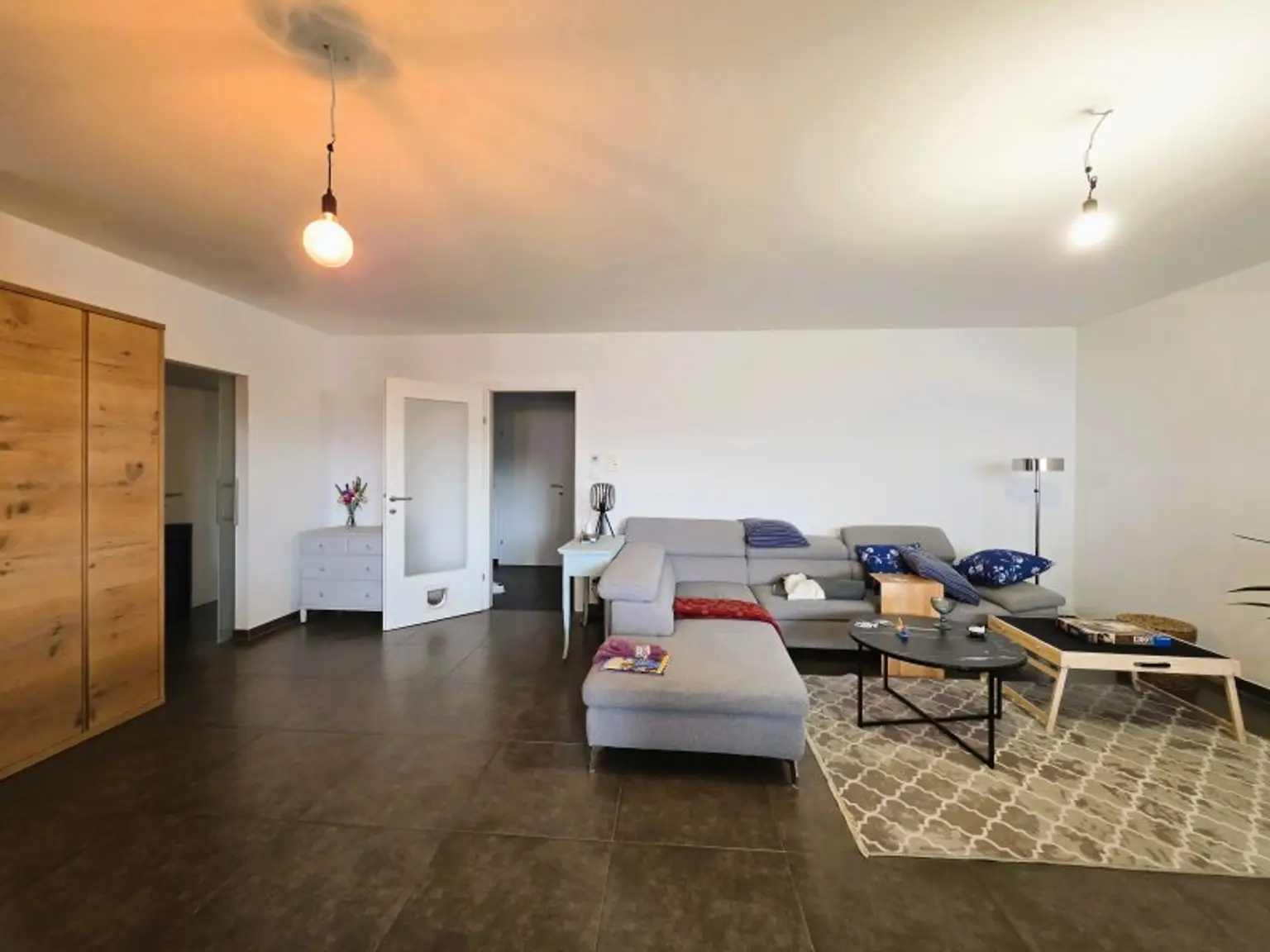 Das Vorzimmer bietet angenehm viel Platz und erschließt das separate WC sowie den praktischen Abstellraum mit Waschmaschinenanschluss.