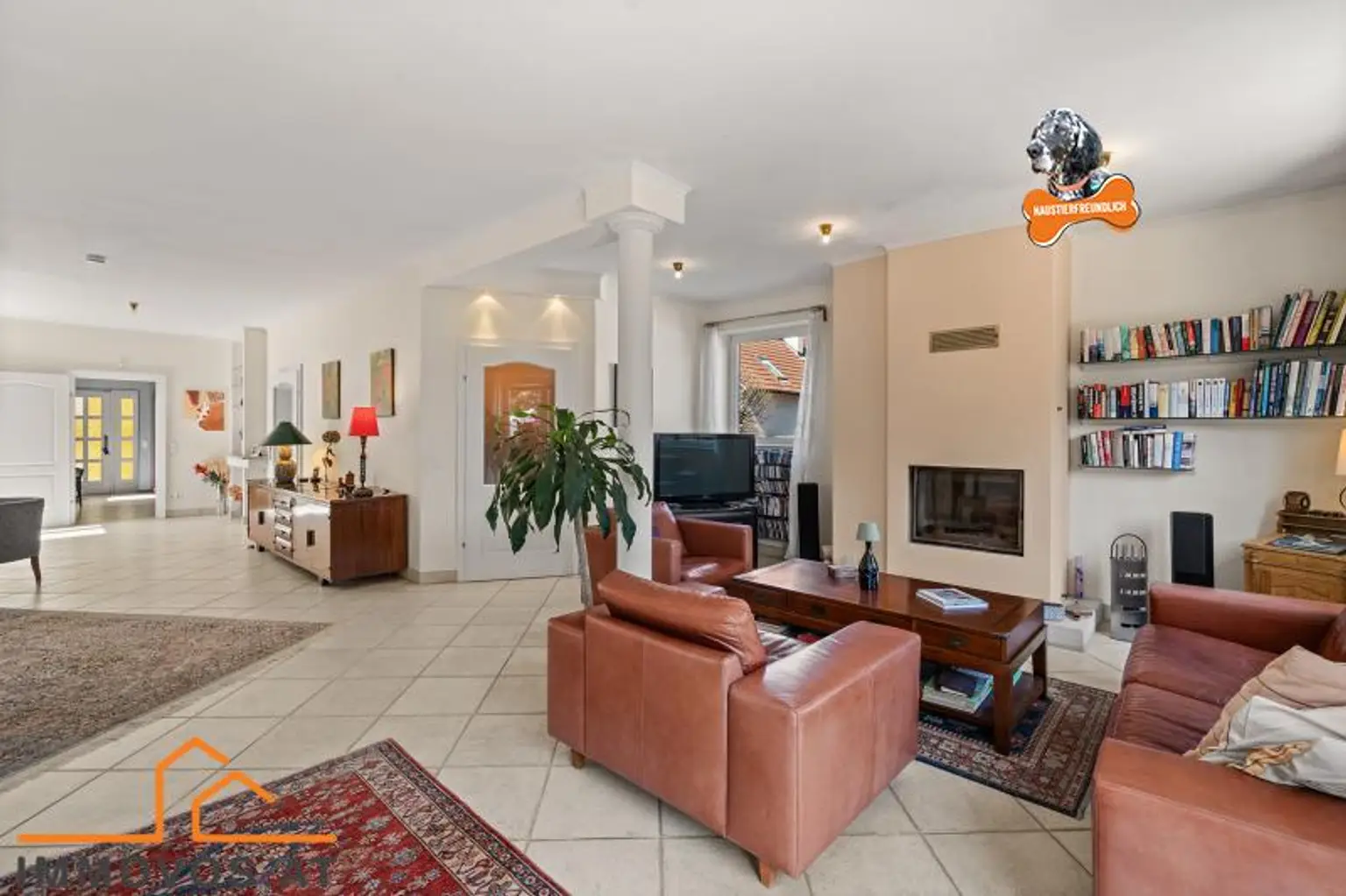 - geräumiger Wohnsalon mit rd. 68 m2 und offenem Kamin, beste Belichtung von 3 Seiten