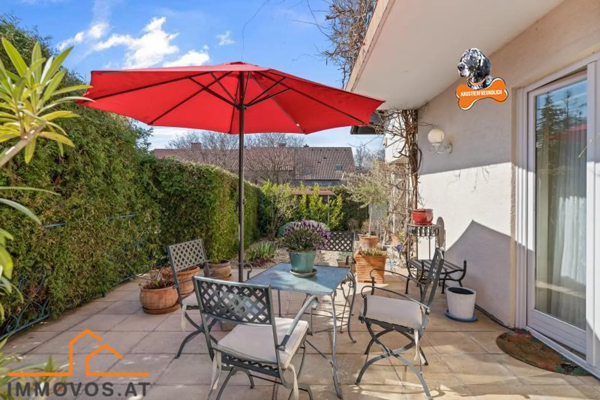 - 2 sonnige Terrassen sind vom Wohnsalon aus begehbar und bieten ganztags Sonne