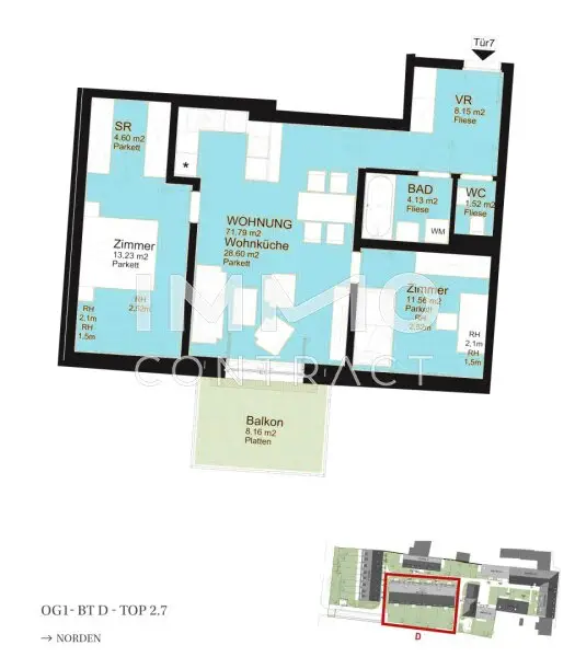 * Private Freiflächen bei allen Einheiten: Gärten, Terrassen, Balkone oder Loggien