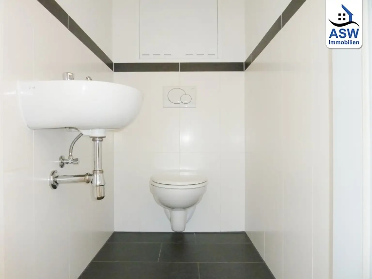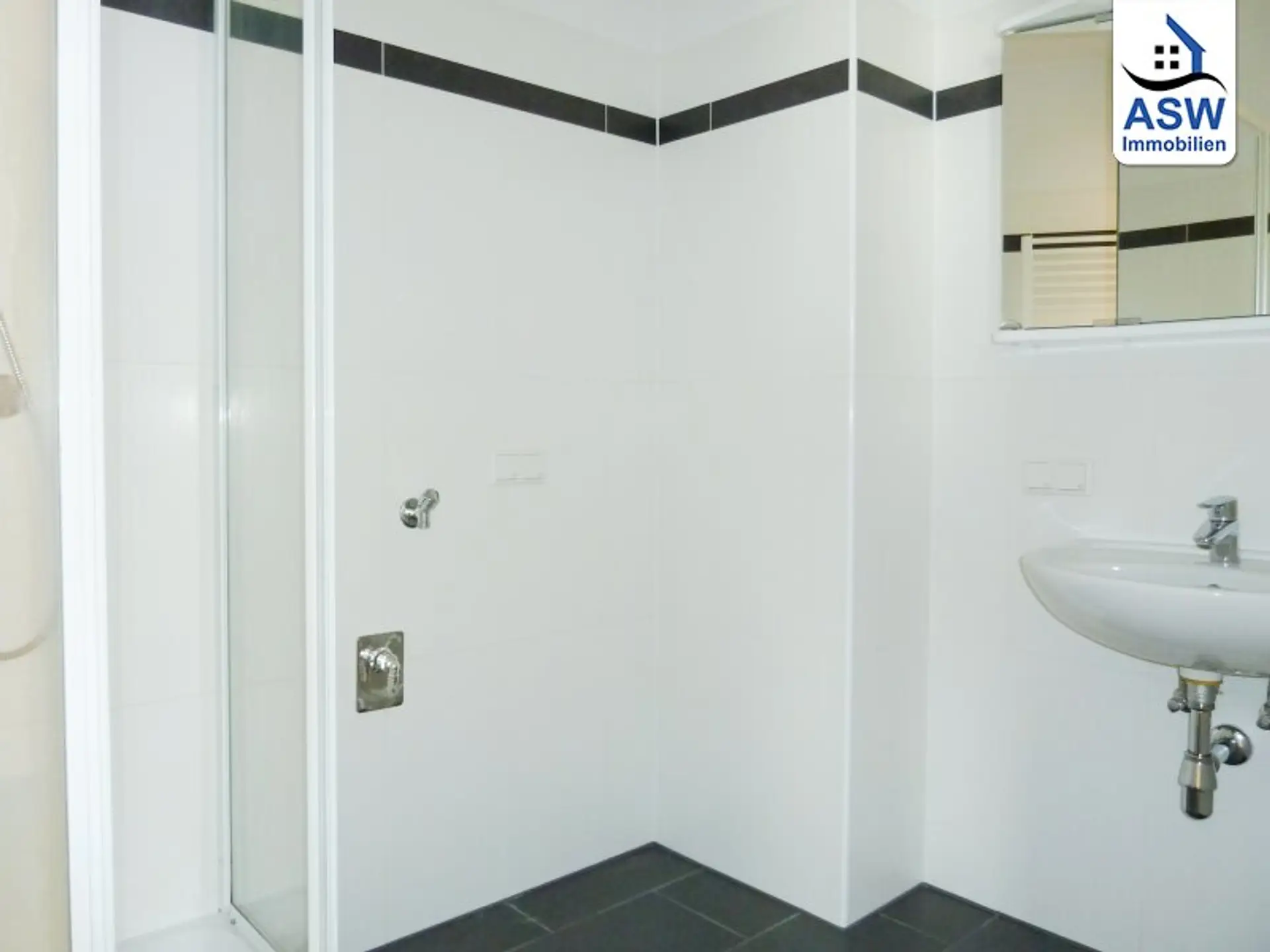 - Badezimmer mit Dusche und Waschmaschinenanschluss