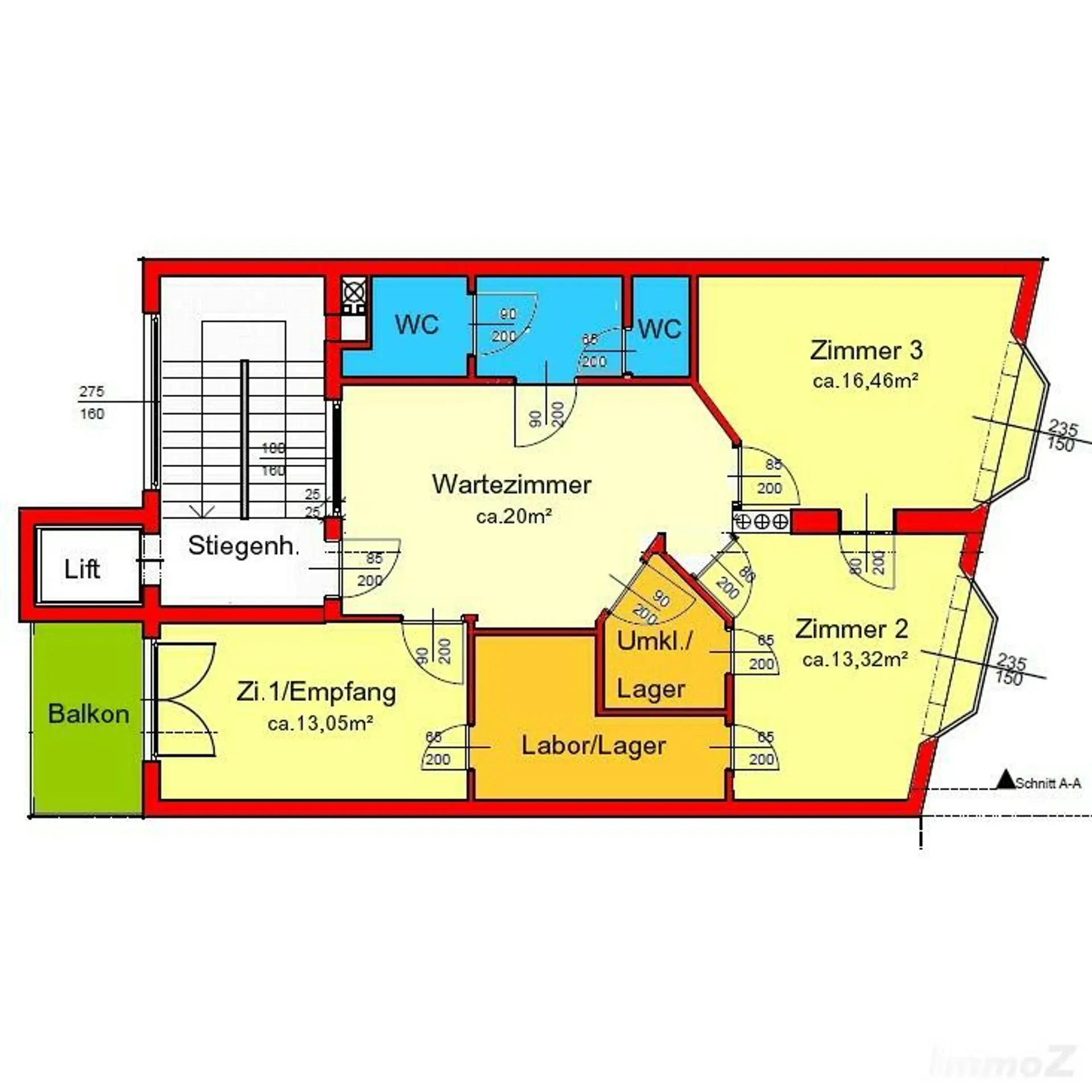 Das Objekt liegt im 1.OG (mit Lift) und besteht aus einem großen innenliegenden Wartebereich,