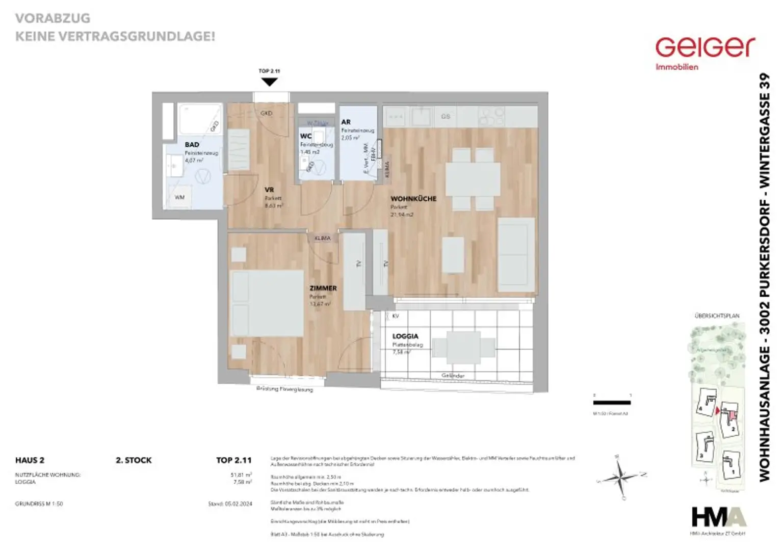 In der zentrumsnahen Wintergasse 39 im beliebten Purkersdorf, errichten wir eine moderne Wohnhausanlage. Diese fügt sich harmonisch in den Hang ein, besteht aus 4 Wohnhäusern mit insgesamt 48 Wohnungen (2-, 3-, 4- und 5-Zimmer Wohnungen), 74 KFZ-Tiefgaragenplätzen, sowie 8 Stellplätzen für Motorräder.