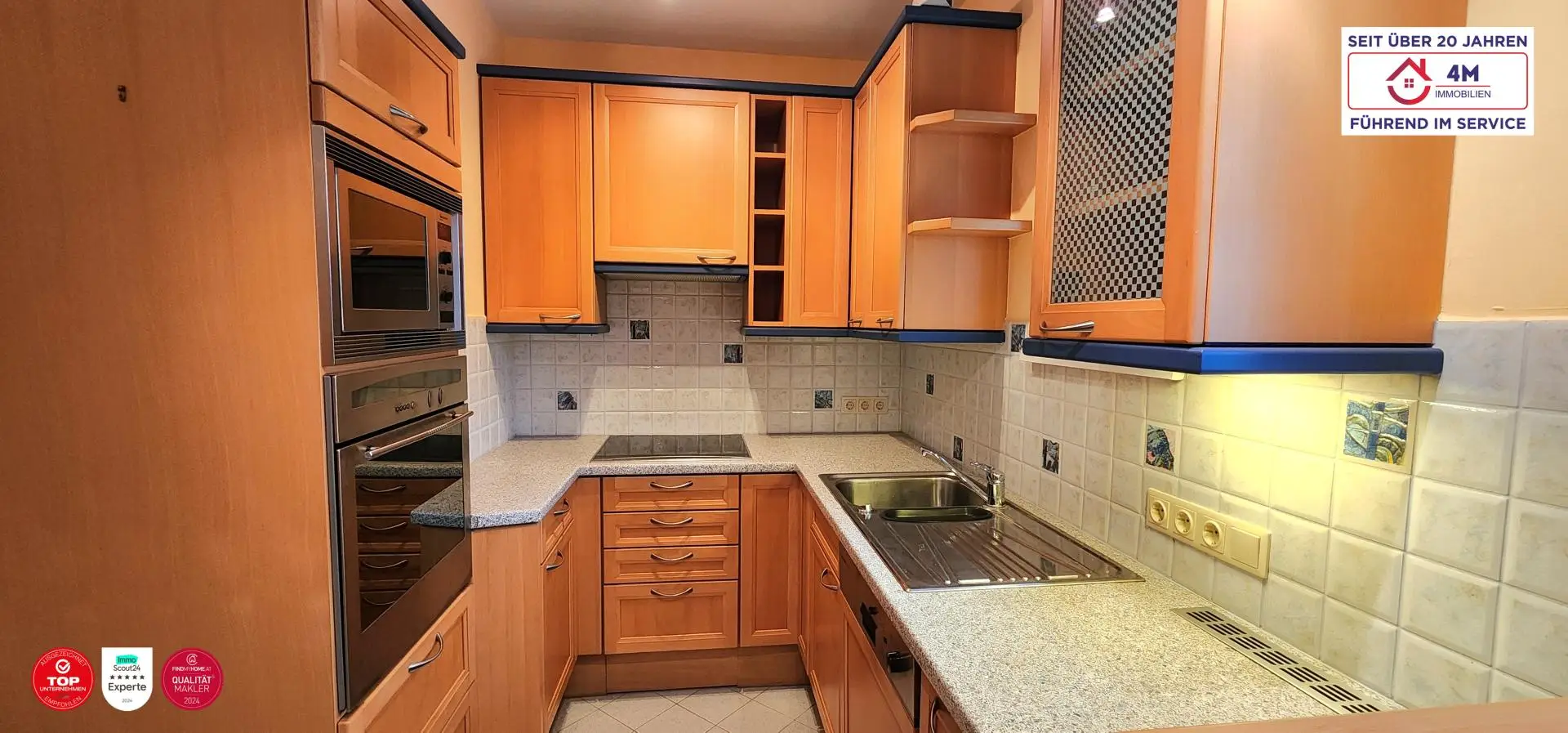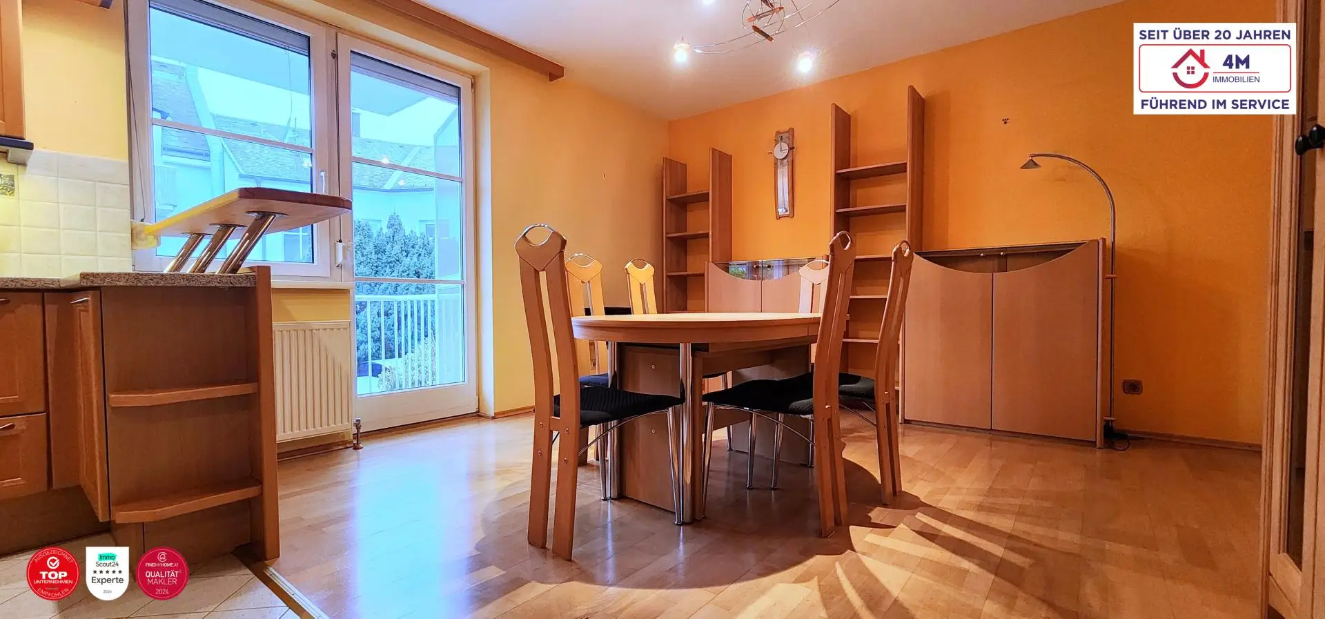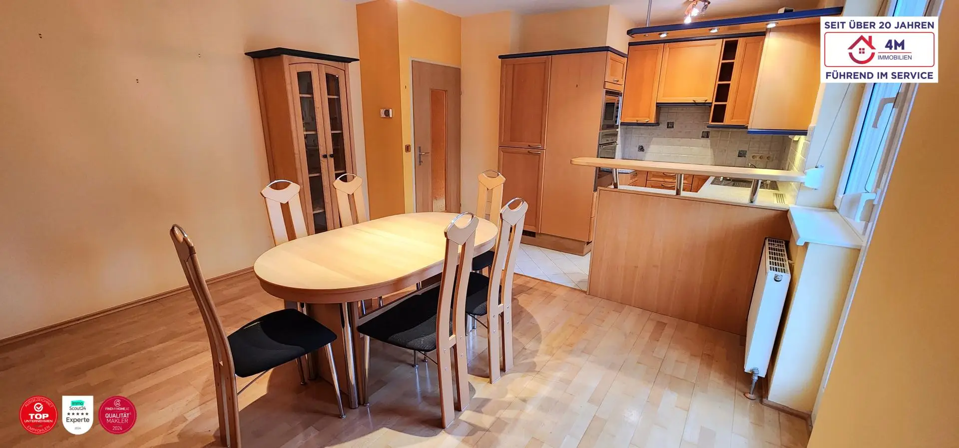 - Vollständig möbliert – hochwertige Vollholz-Tischlermöbel, die der Wohnung einen warmen, wohnlichen Charakter verleihen