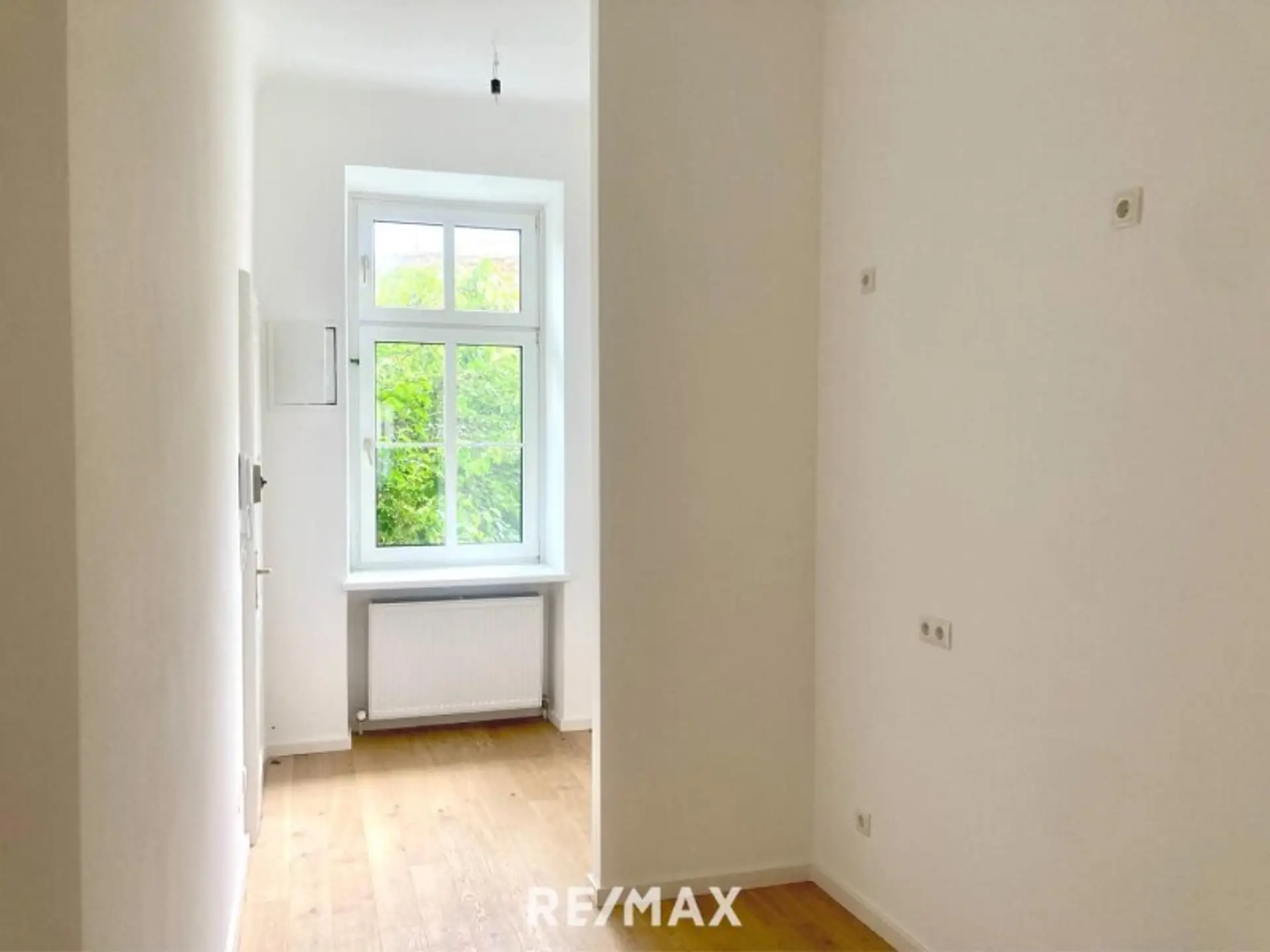 • Zwei Fenster sorgen für viel Tageslicht und eine angenehme Atmosphäre. Die modernen Holzfußböden tragen zum freundlichen Ambiente bei.