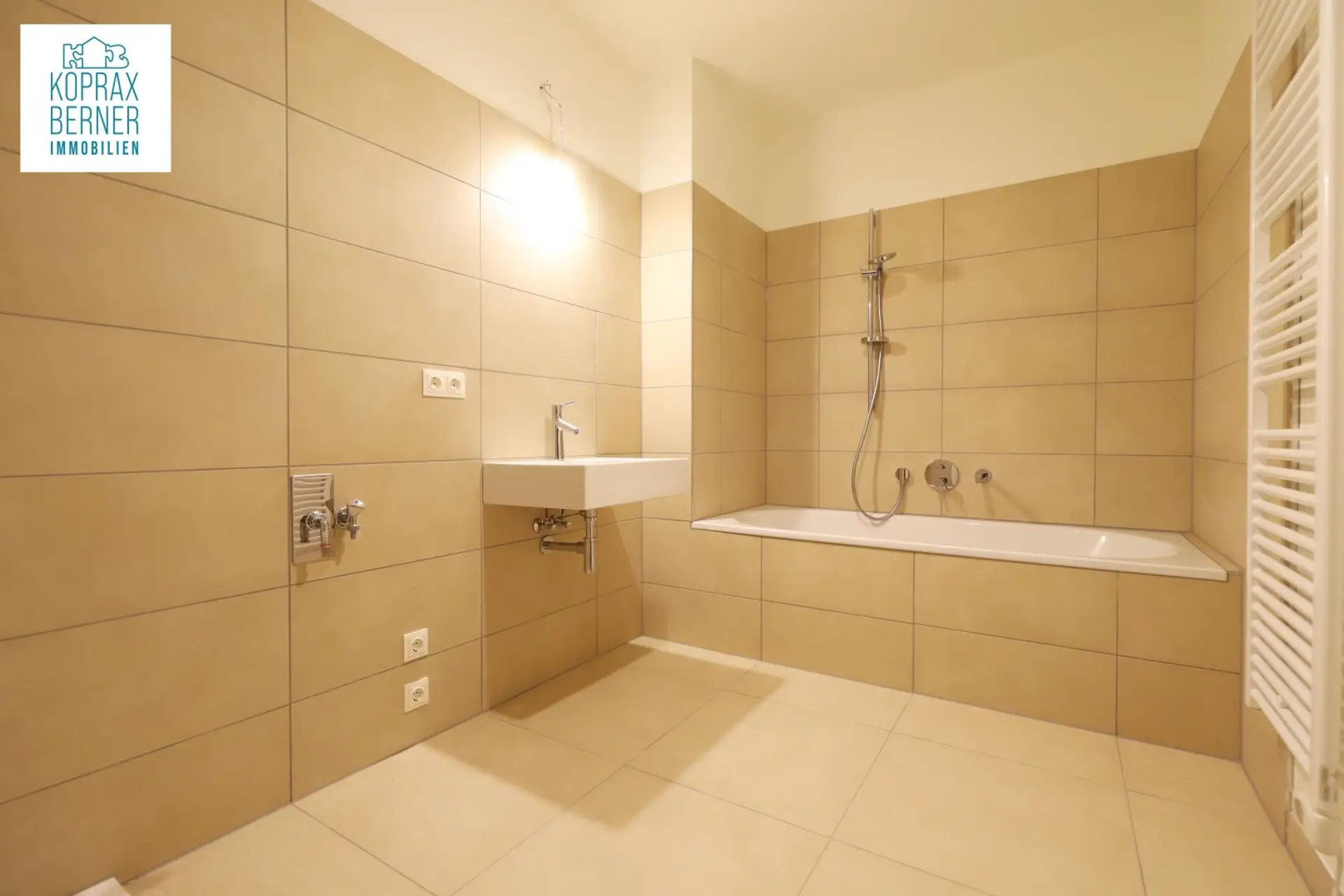 - Elektrischer Handtuchheizkörper im Badezimmer, sowie Waschmaschinen und Wäschetrockneranschluss