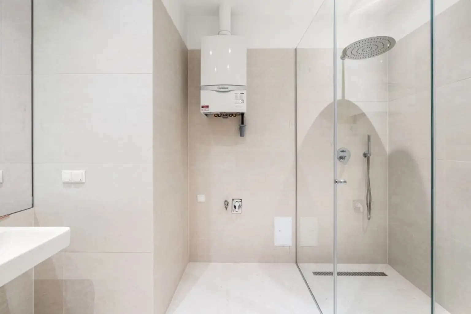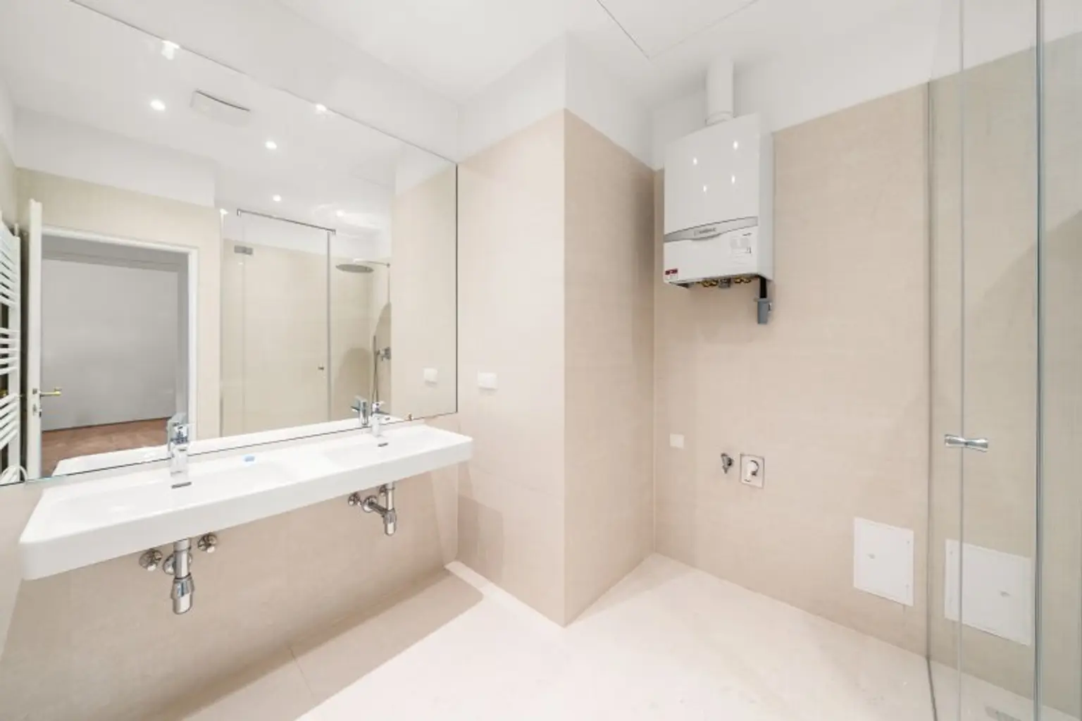 * Badezimmer mit Dusche und Doppelwaschbecken
