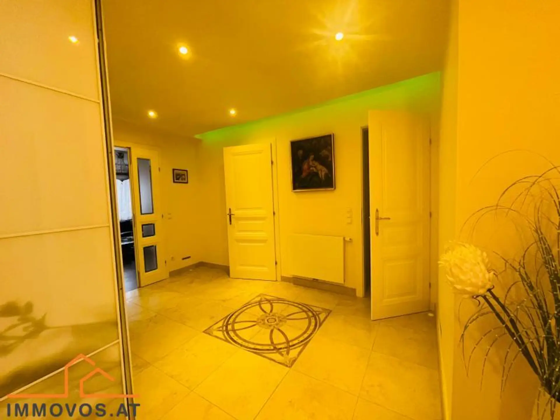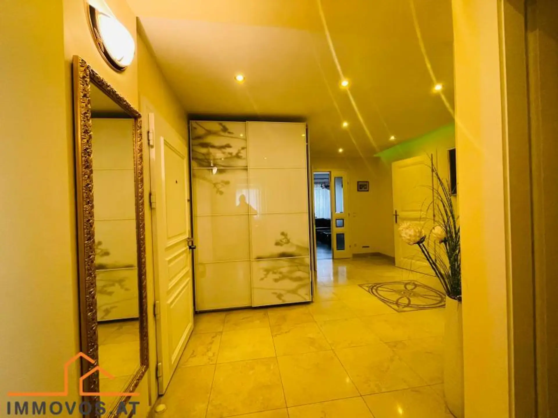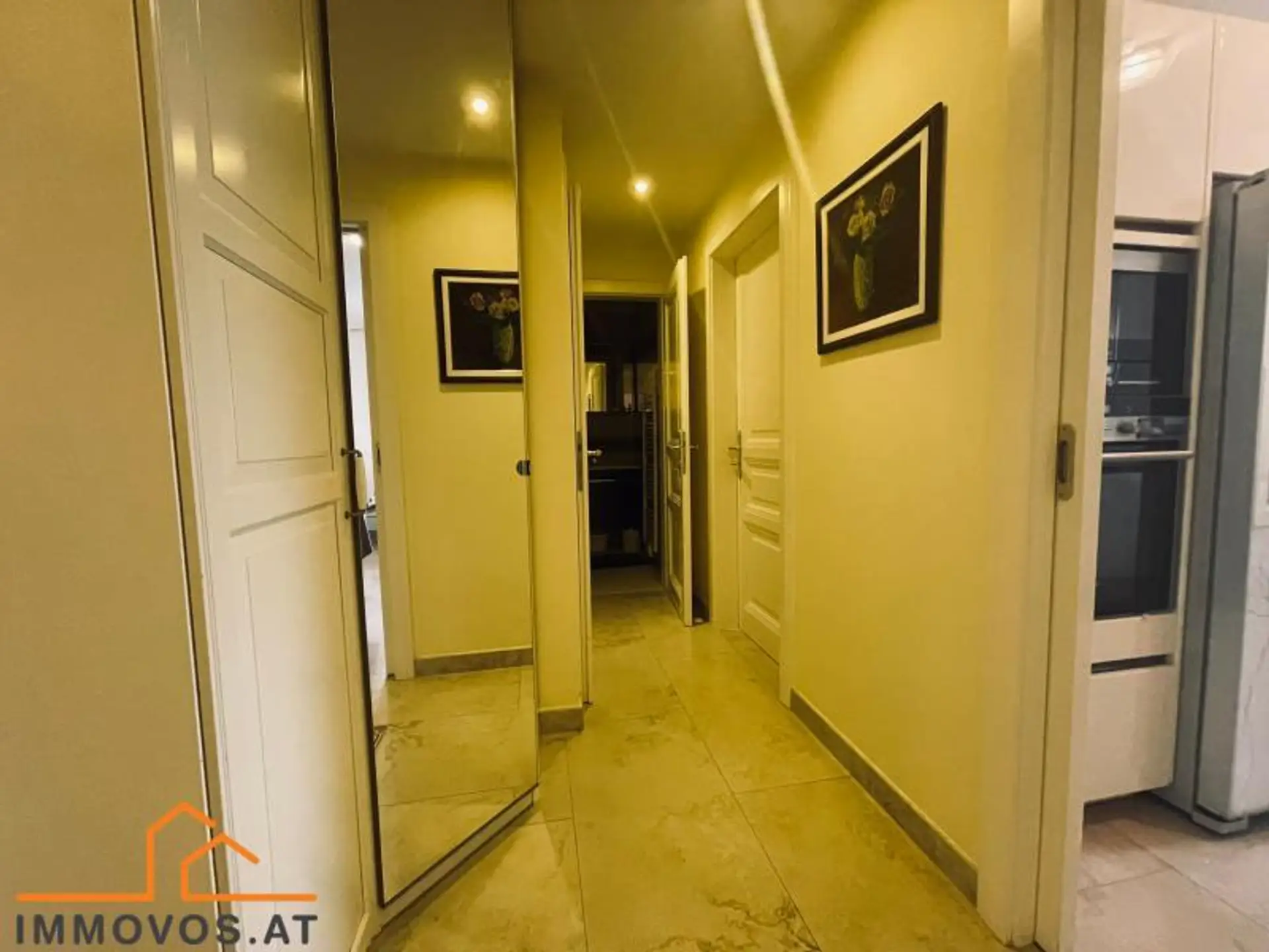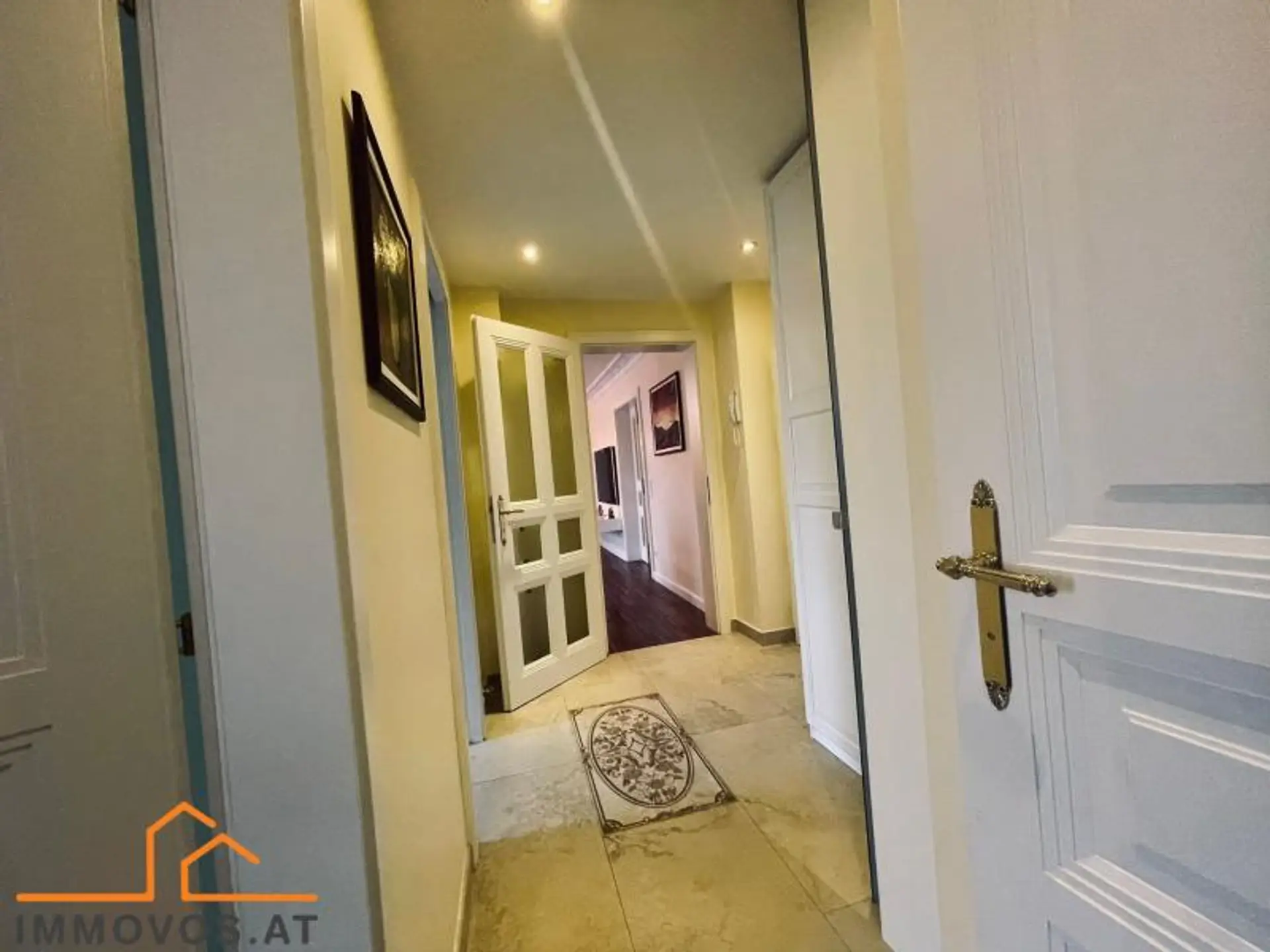 - zentrales Vorzimmer (moderner Gardarobenschrank, Deckenspots und effektvolle, indirekte Beleuchtung, italienische Marmorfliesen mit Mosaiken)
