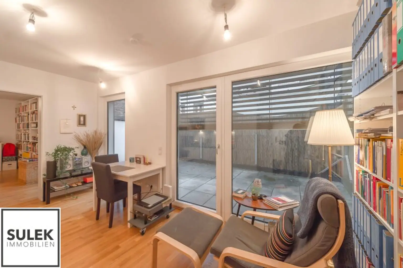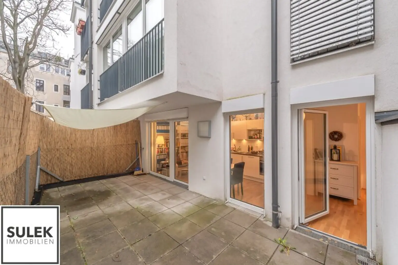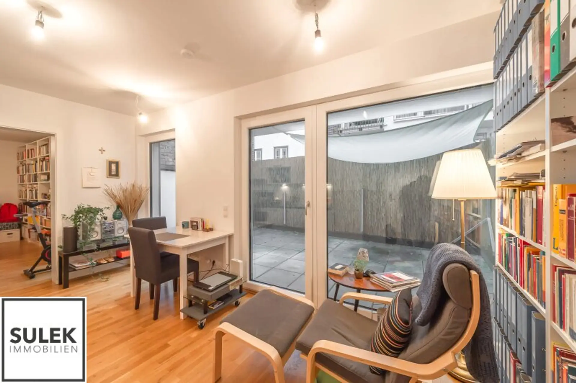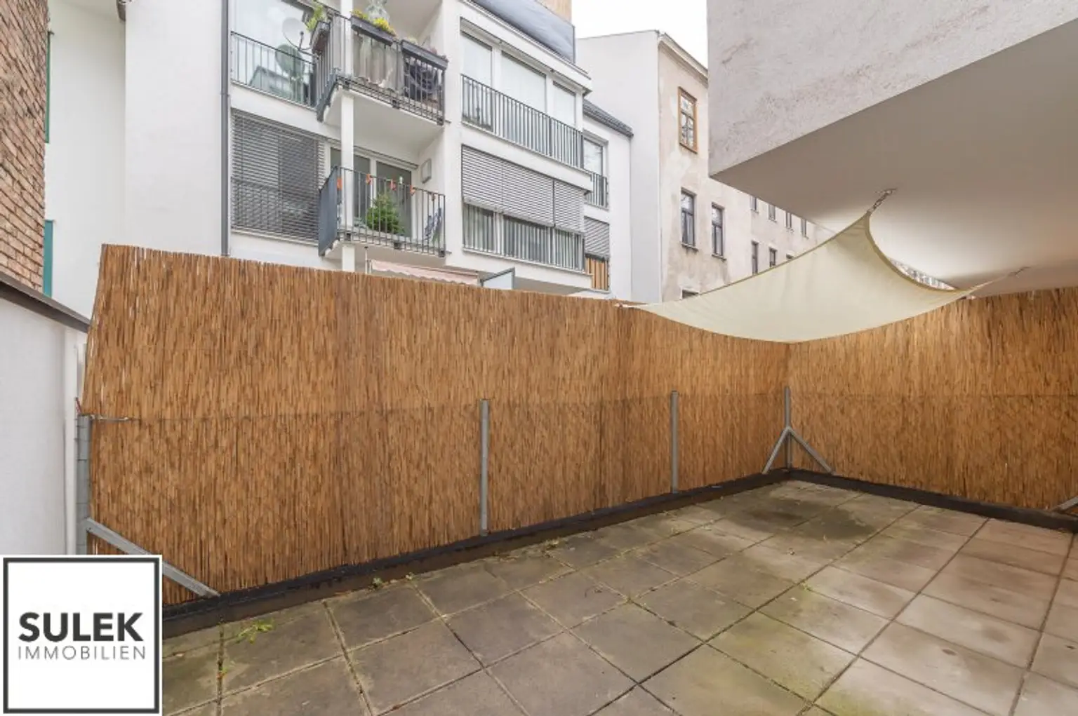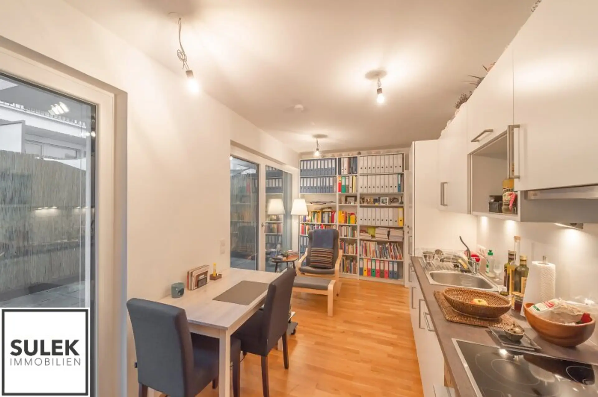 Durch den Eingangsbereich mit angeschlossener Toilette betreten Sie den sehr offen gestalteten Wohn- und Essbereich mit vollausgestatteter Küche. Das Schlafzimmer, mit hochwertig ausgestattetem en-suite-Badezimmer mit Badewanne und Waschmaschinen-Anschluss, erreichen Sie über den Wohnraum. Das Highlight ist jedoch bestimmt die rund 21m² große private Terrasse. Die Wohnung ist gänzlich hofseitig ausgerichtet und daher ruhig.