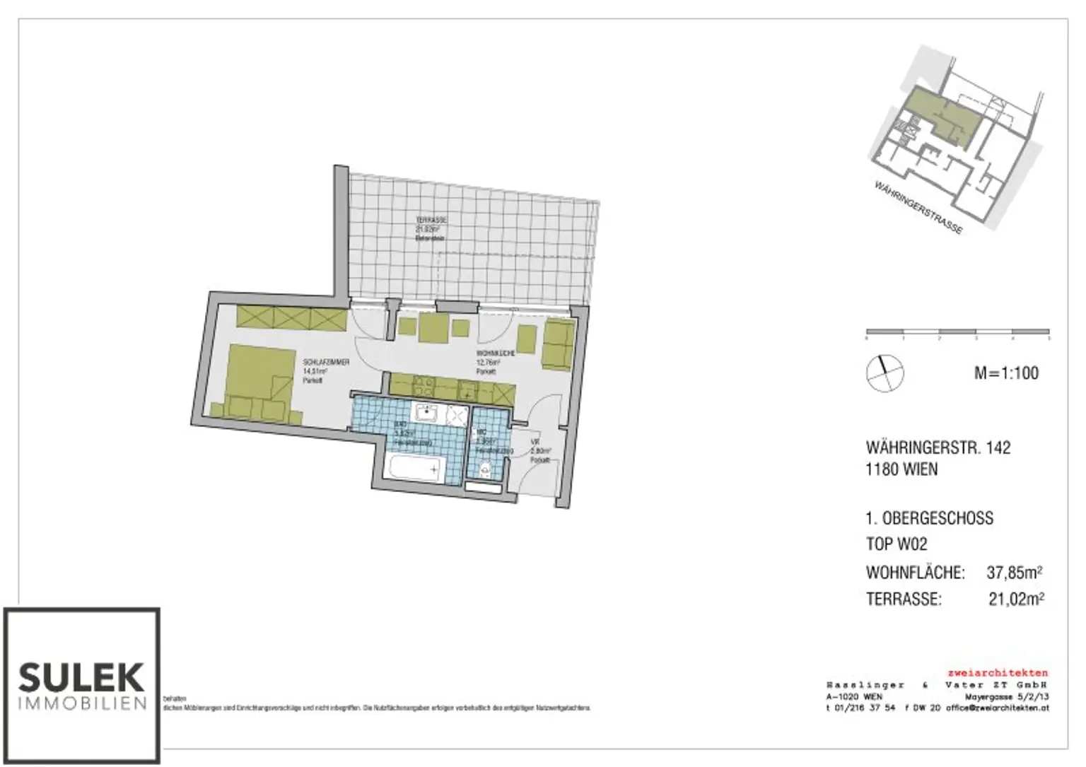 In der Währingerstraße, vis á vis dem Währinger Schubertpark gelegen, bietet die Wohnung eine Ruhelage und dennoch eine gute Infrastruktur. Diverse Einkaufsmöglichkeiten (Billa - 240m, Spar - 750m), sowie Restaurants und einige Boutiquen in der Währingerstraße sind fußläufig gut erreichbar.