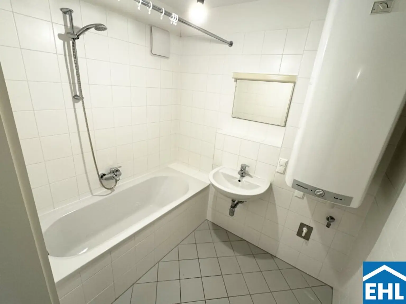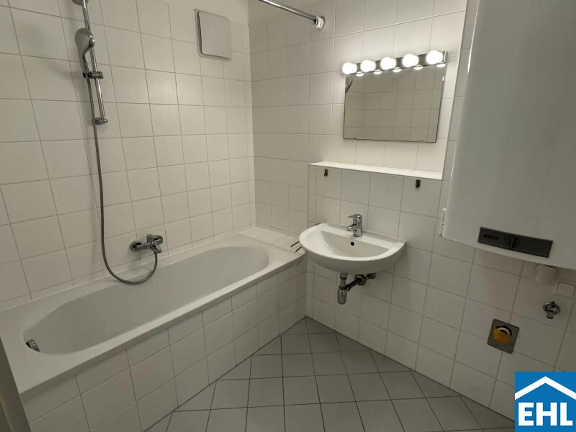 * Badezimmer mit Badewanne und Waschmaschinenanschluss