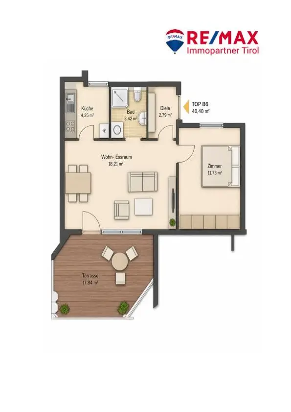 - Großzügige, sonnige Terrasse mit ca. 17 m²