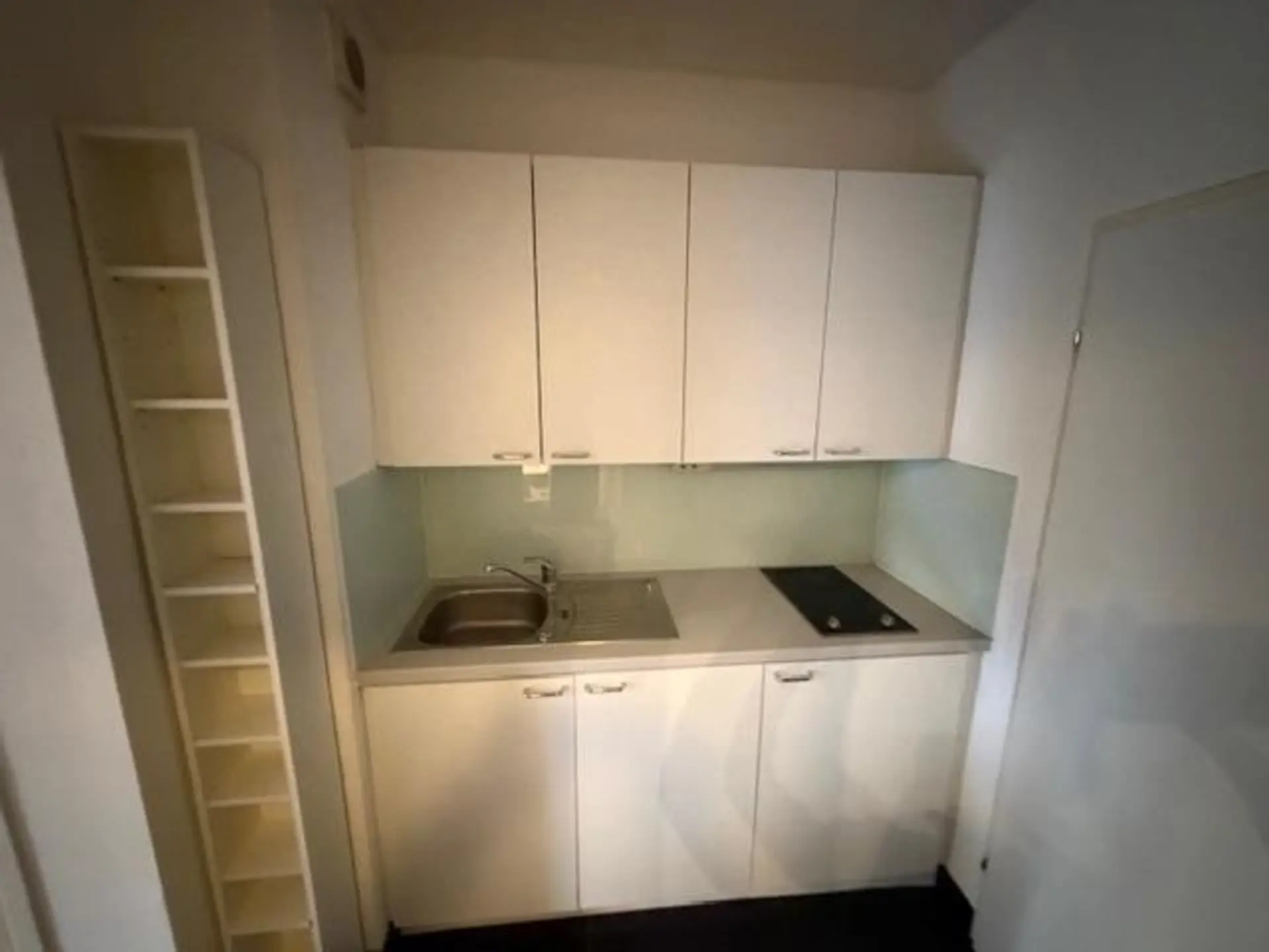 Eingang rechts eine kleine aber Vollfunktionierende Küchennische mit Geräten vom Tischler (Modern) eingebaut.