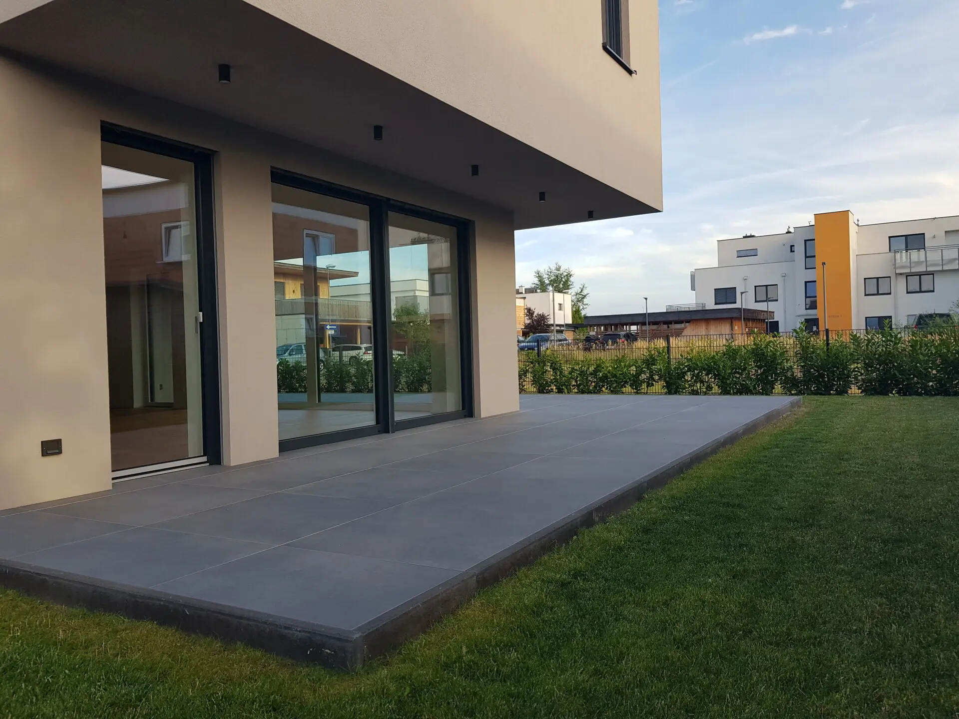 Das Wohlfühlhaus begrüßt Sie im Erdgeschoss mit einem offenen Raumkonzept, ein zentraler Vorraum mit Garderobenbereich stellt einerseits die Verbindung mit dem Technikraum, dem Gäste-WC sowie dem imposanten Wohnsalon mit integriertem Küchenbereich über die gesamte Ebene dieses hochwertigen Luxusdomizils dar. Dem Wohnbereich vorgelagert liegt der frisch begrünte Garten sowie ein gut 70m2 großer Terrassenbereich für herrliche Sonnenstunden und Grillabende mit Ihren Freunden und Ihrer Familie.