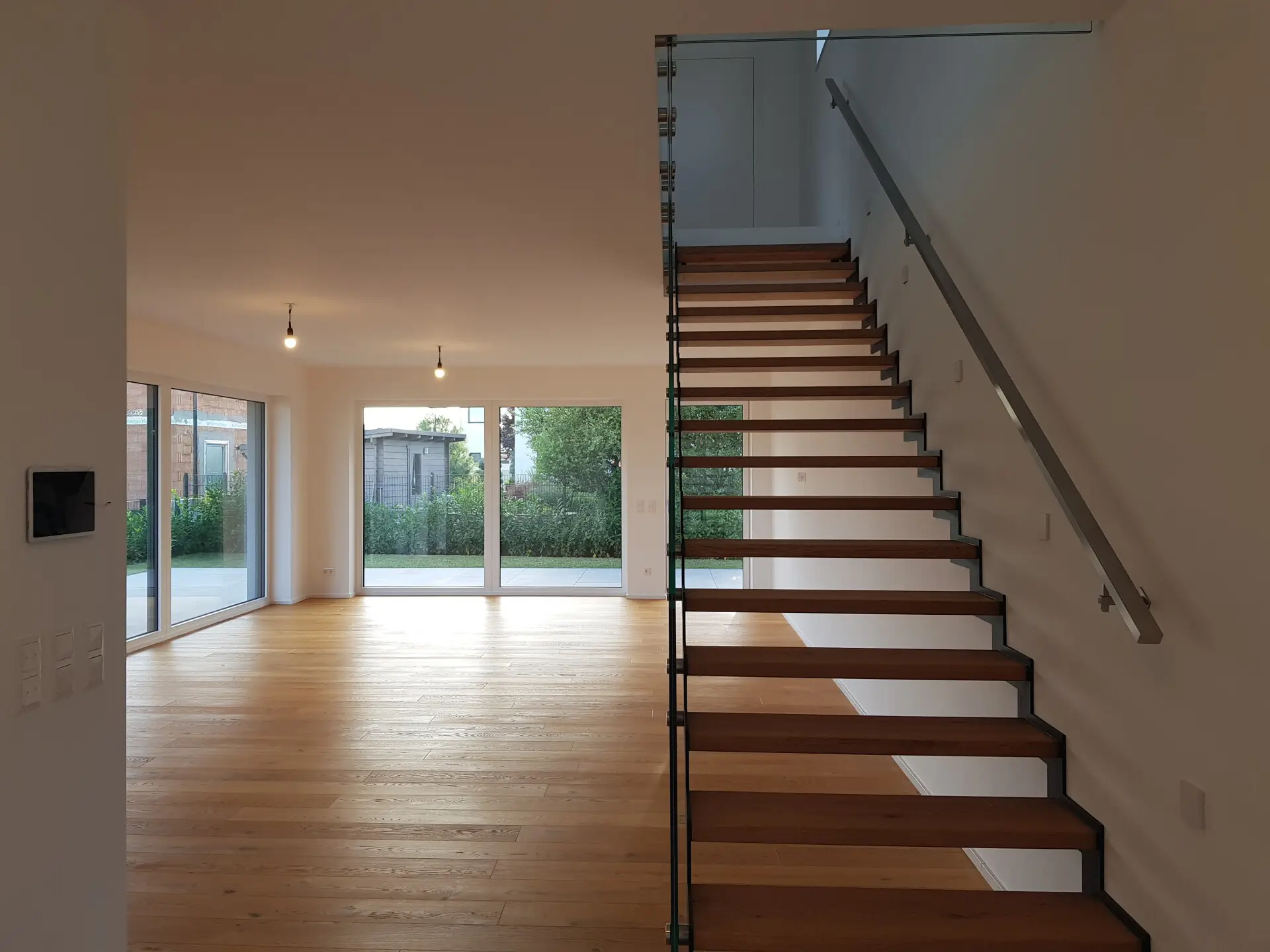 Ganz besonders sind die hochwertigen Ausstattungsmerkmale hervorzuheben, Zusatzausstattungen wie elektrische Beschattungen der Firma Schlotterer, Echtholzböden, Glaselemente, Eckfenster und vieles mehr runden diesen Wohntraum ab.