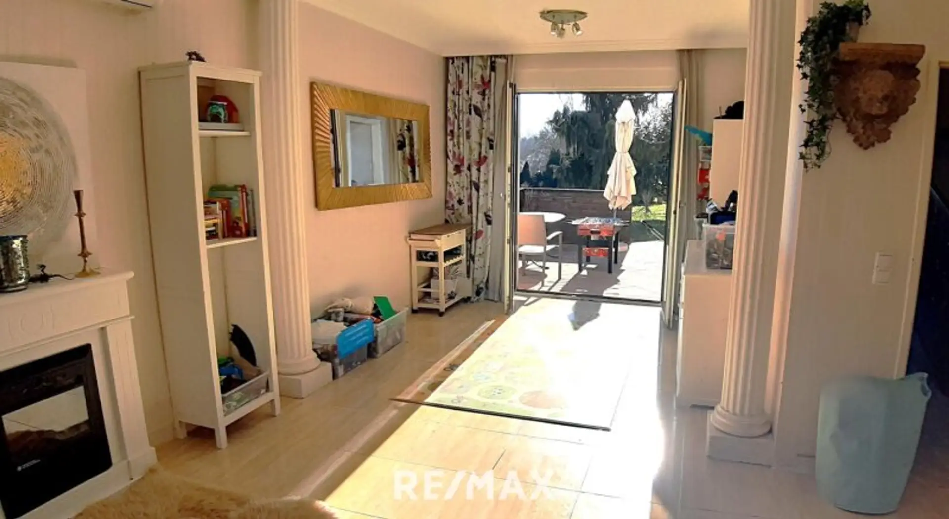 • Repräsentatives Wohnzimmer mit Marmorboden, zwei Säulen und direktem Zugang zur Terrasse