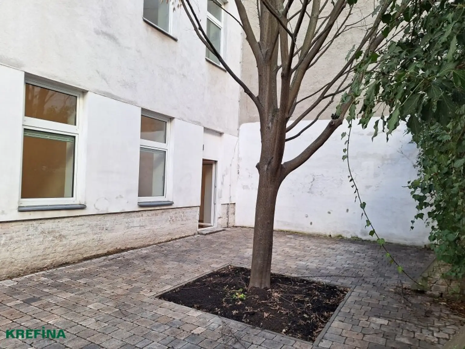 - Wohnzimmer mit Ausgang in einen kleinen begrünten Innenhof
