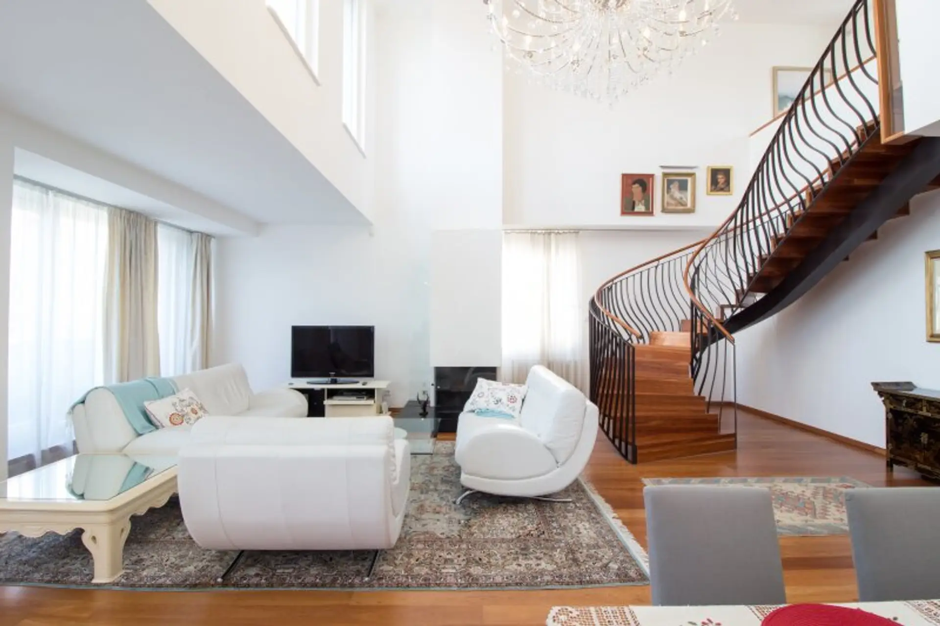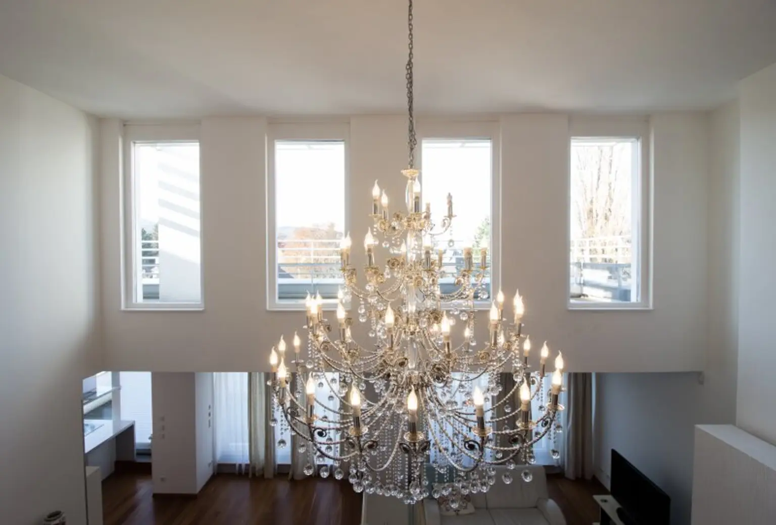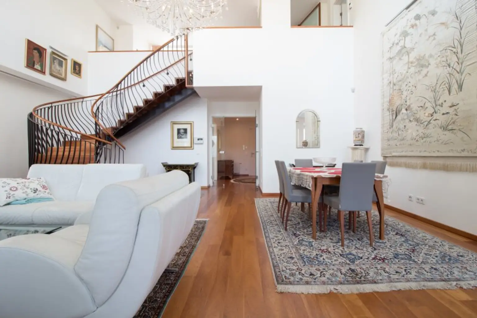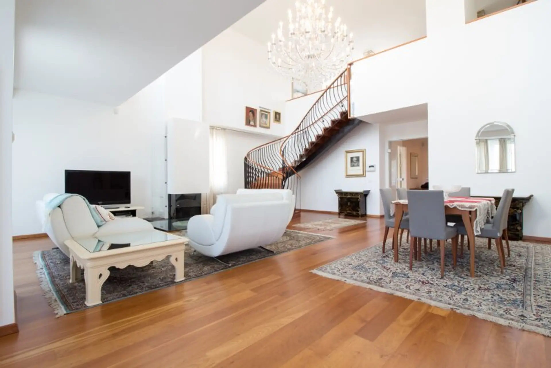 Der phänomenale Eingangsbereich bringt Sie in den prachtvollen und exklusiven Wohnraum mit einem Kamin und einem atemberaubenden Kristallluster, der die Augen zum Funkeln bringt.