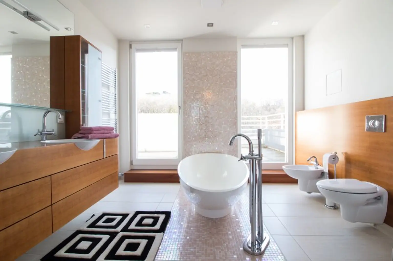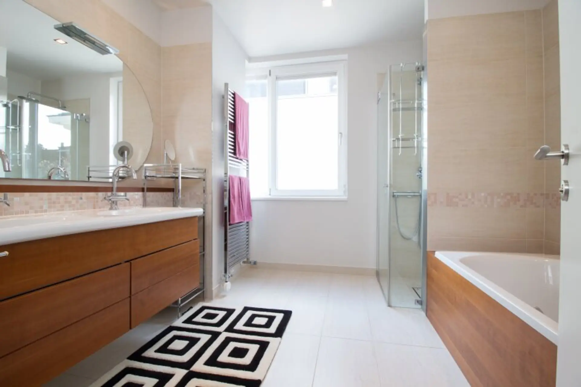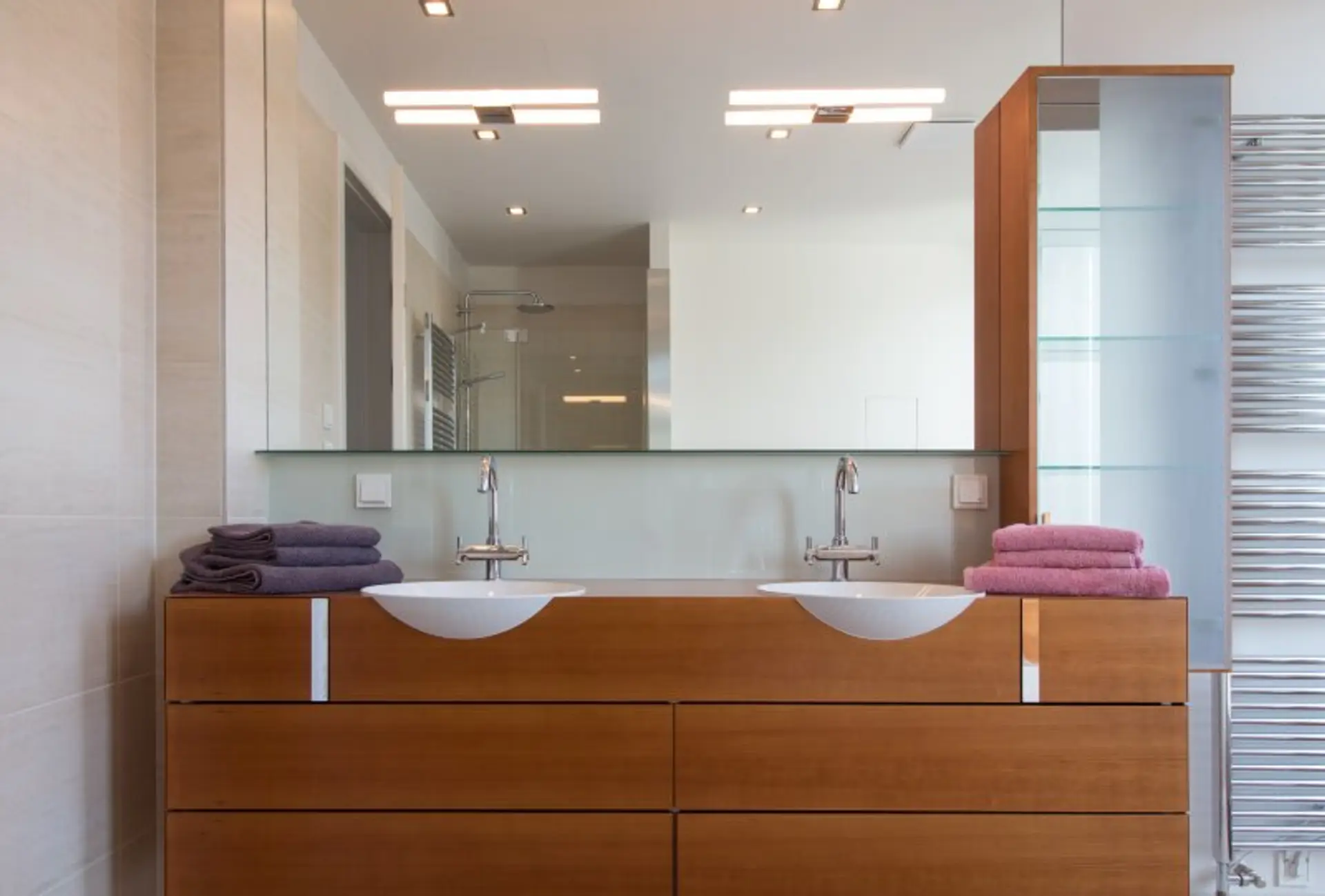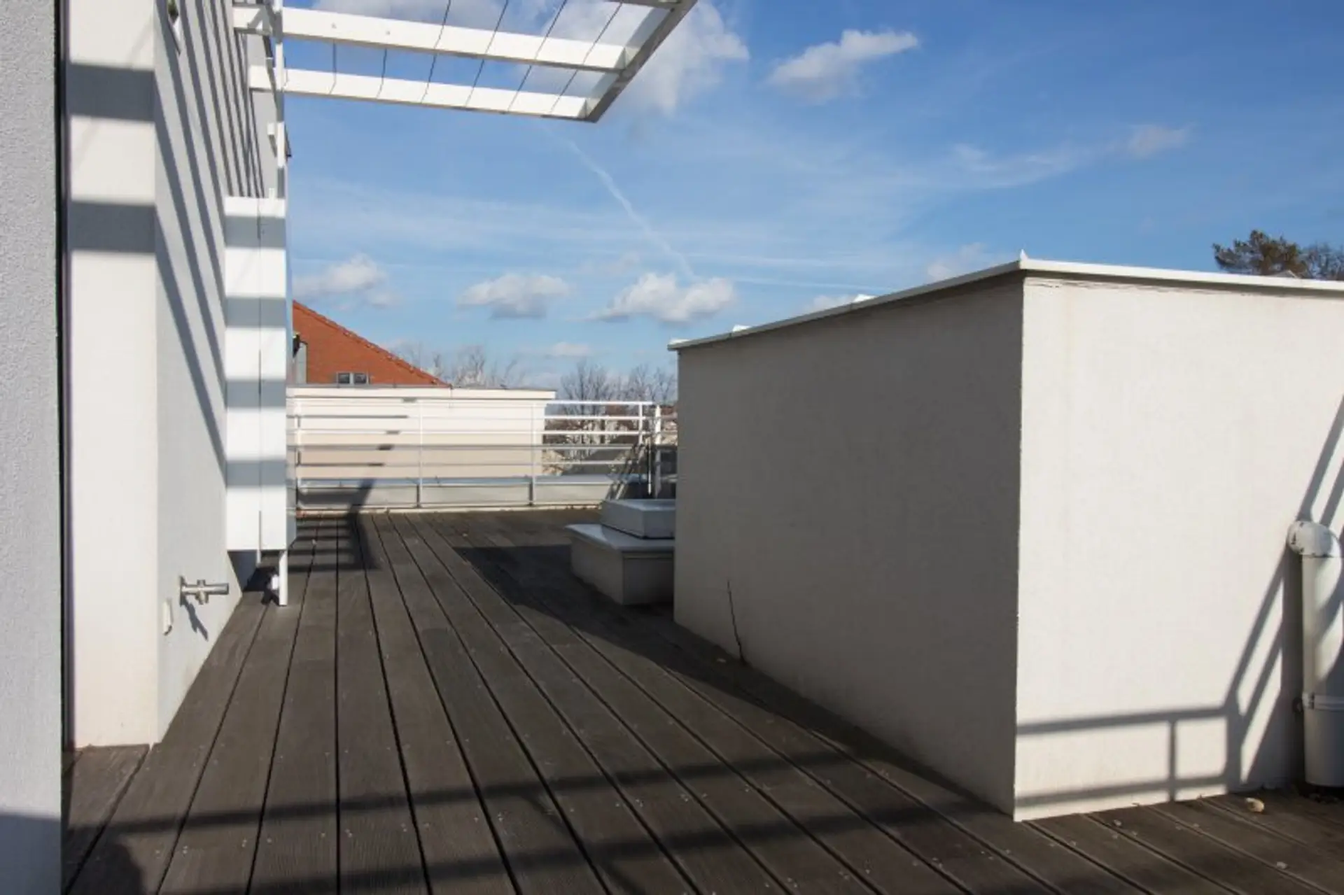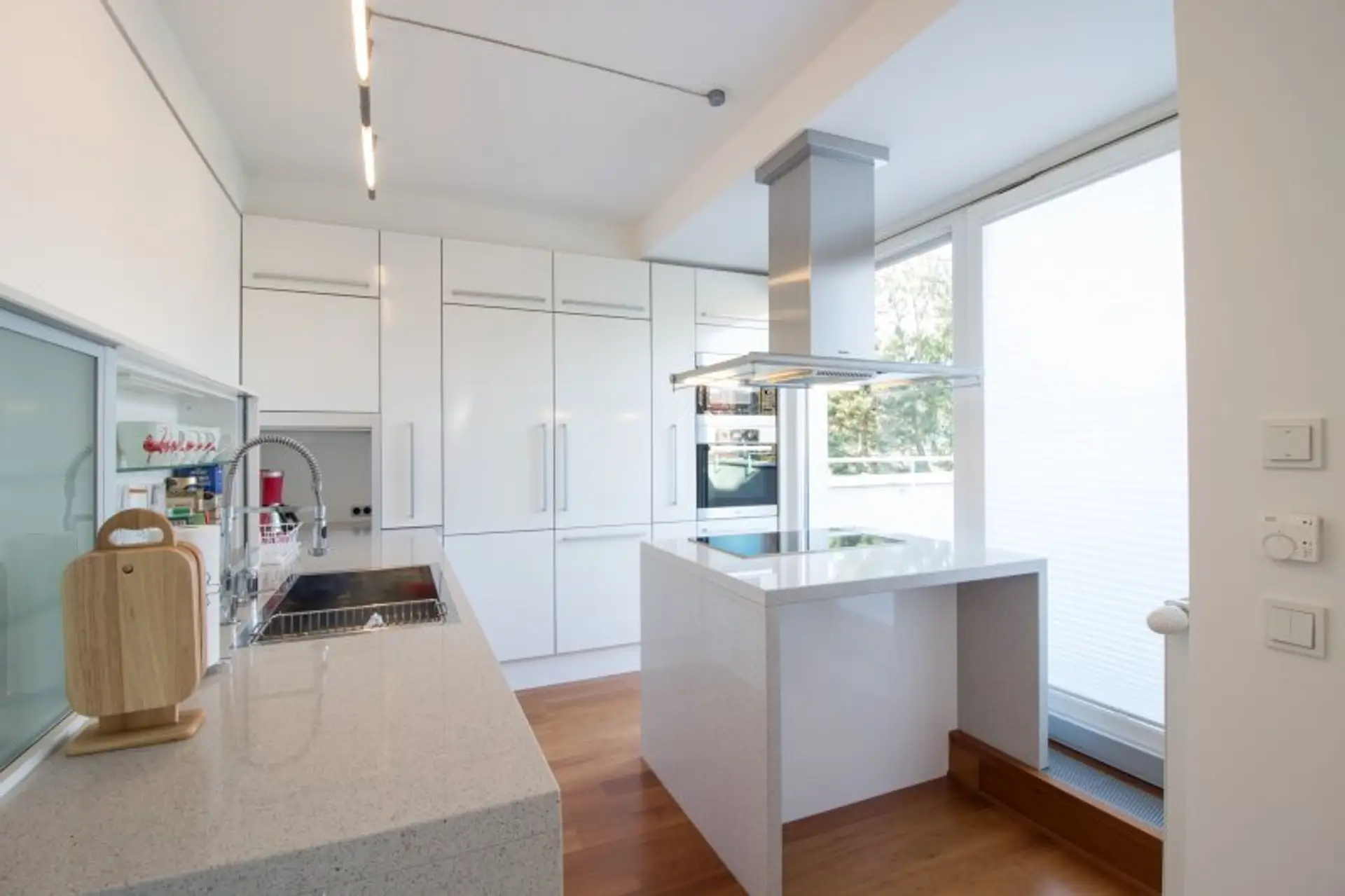Kirschholzböden, Feinsteinzeug der besonderen Art, Fußbodenheizung, elektrische Rollläden, Teakholz auf allen Terrassen, Gasheizung und eine Alarmanlage sind nur einige der wundervollen Materialien, die in diesem Raritätsobjekt verbaut wurden.