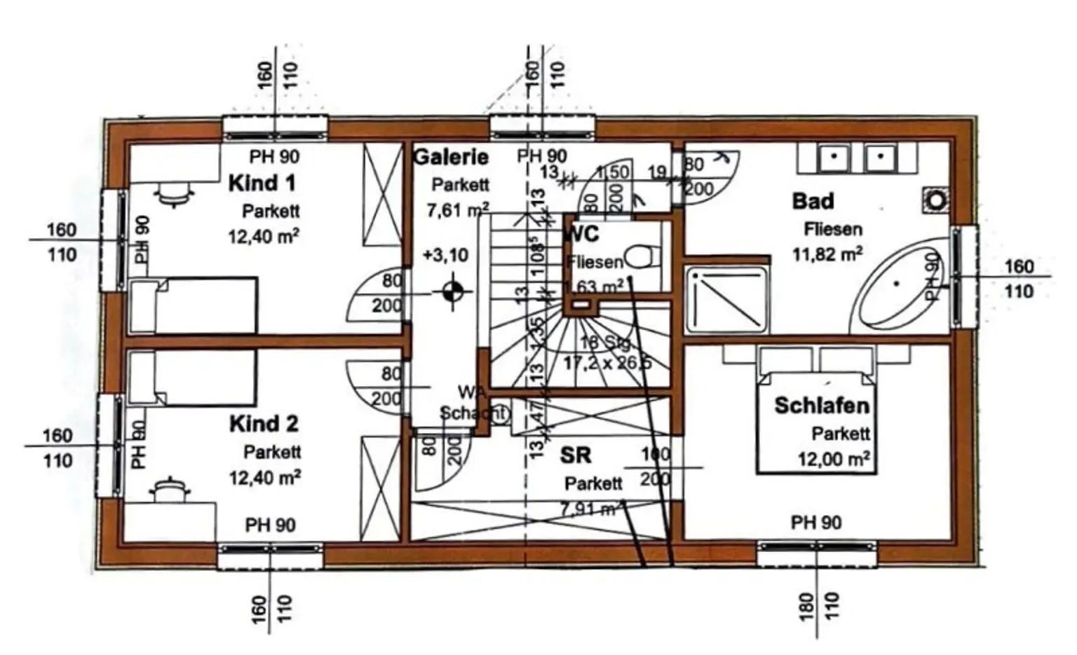 * Jede Etage mit eigenem WC