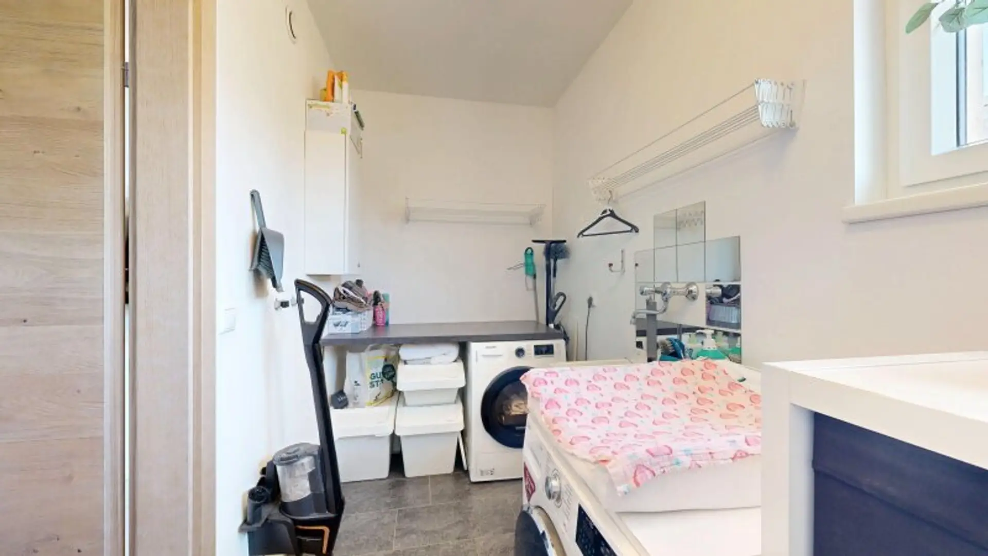 * Technikraum mit Waschmaschinenanschluss und Waschbecken