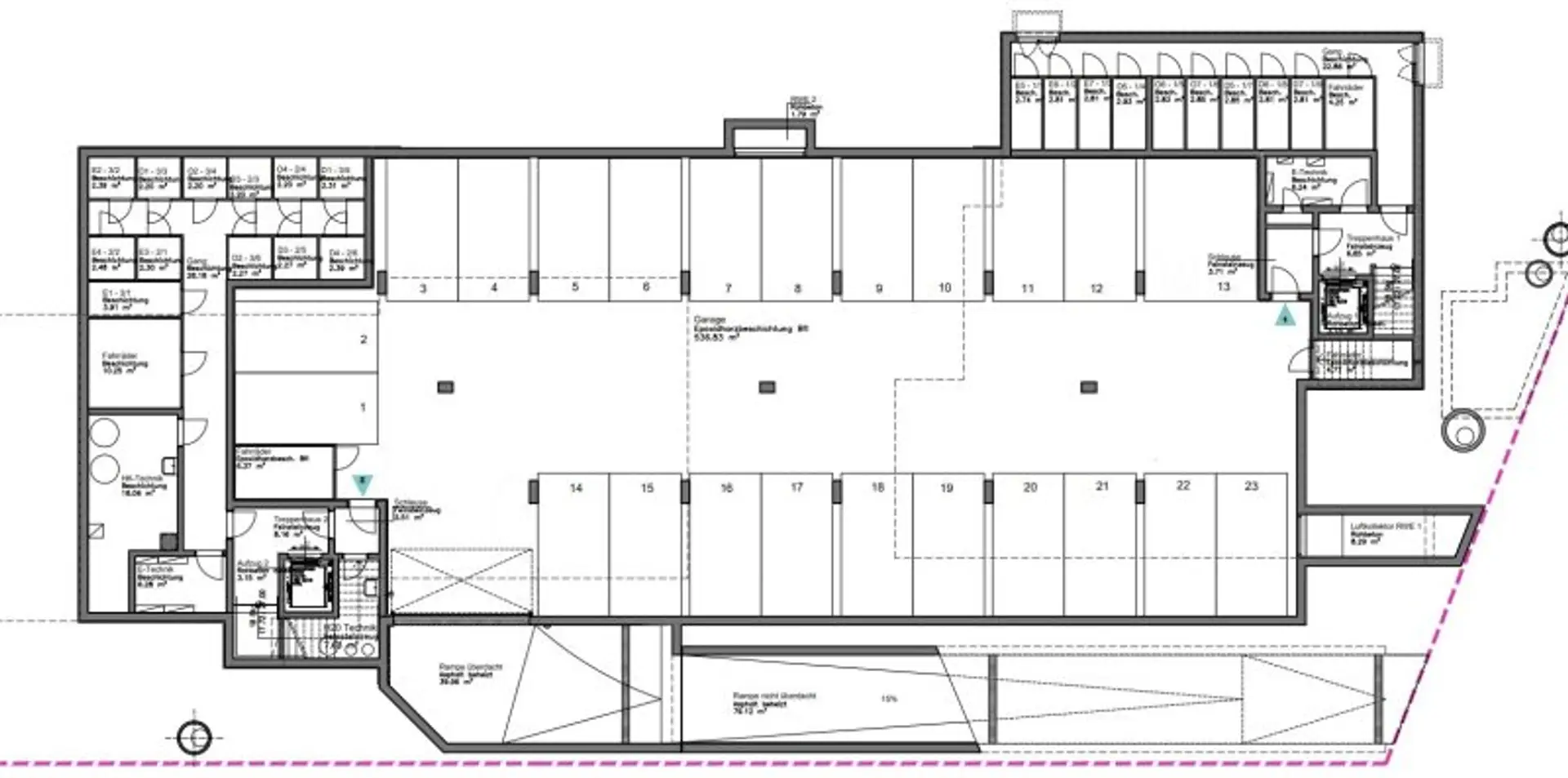 Der Stellplatz befindet sich in einer gut beleuchteten, modernen Tiefgarage. Die Einfahrt befindet sich direkt bei der Himberger Straße und die maximale Fahrzeughöhe beträgt 2,10 Meter.