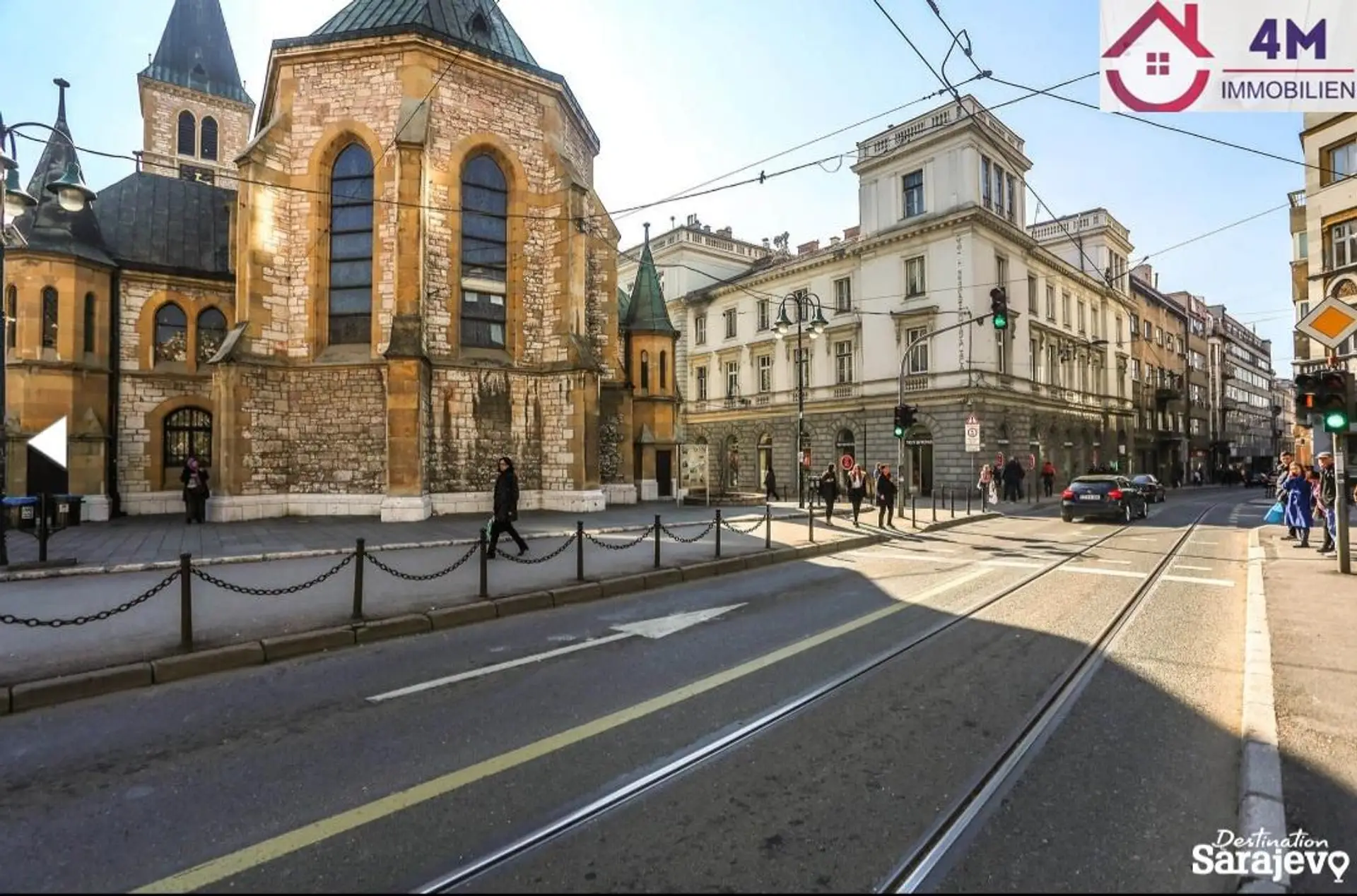 Feuer, die Beg-Moschee, die Domkirche und die ikonische Baščaršija.