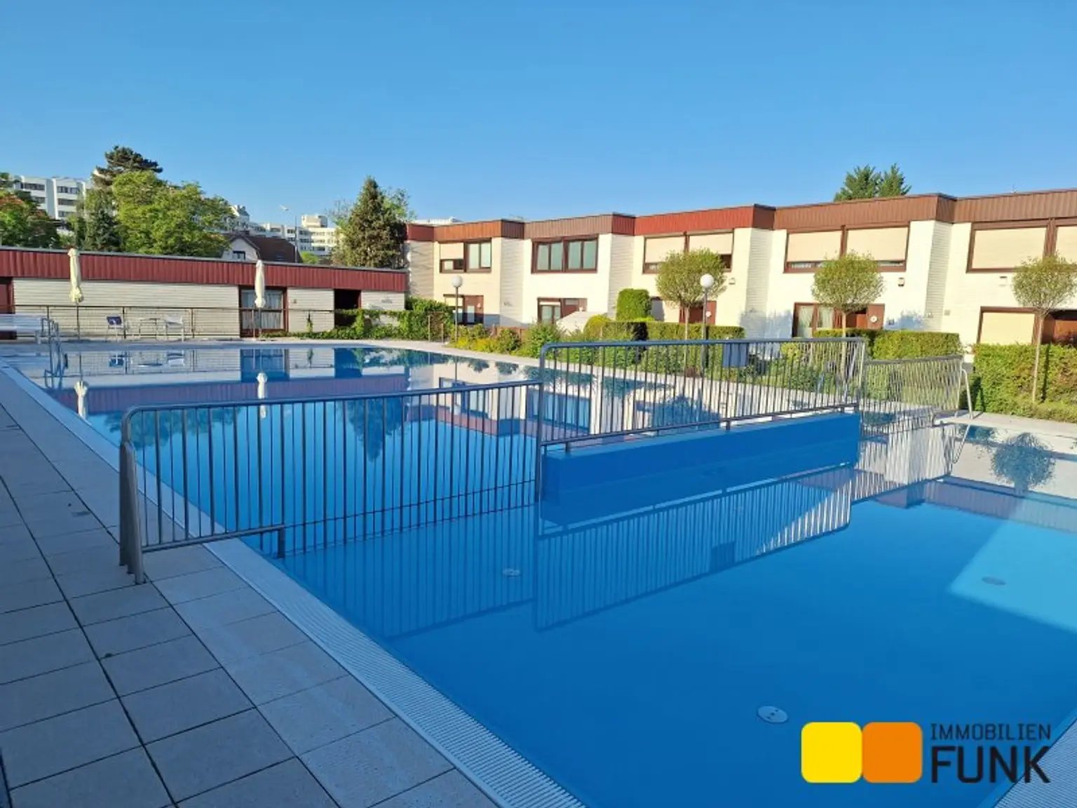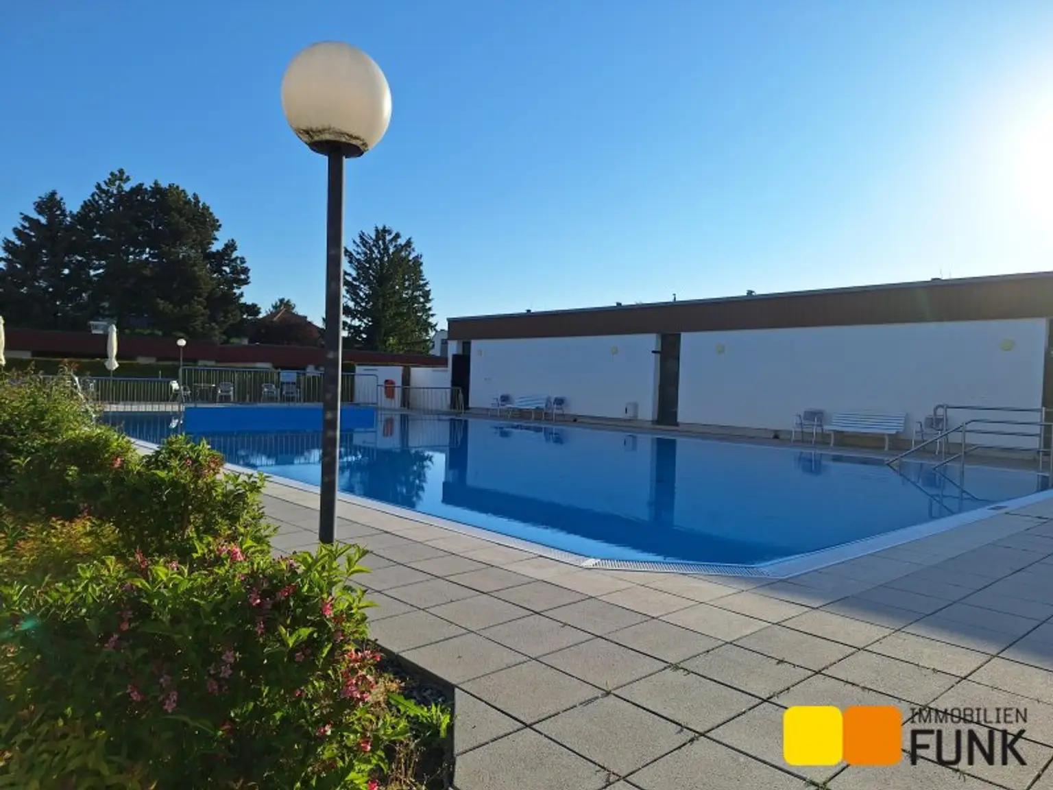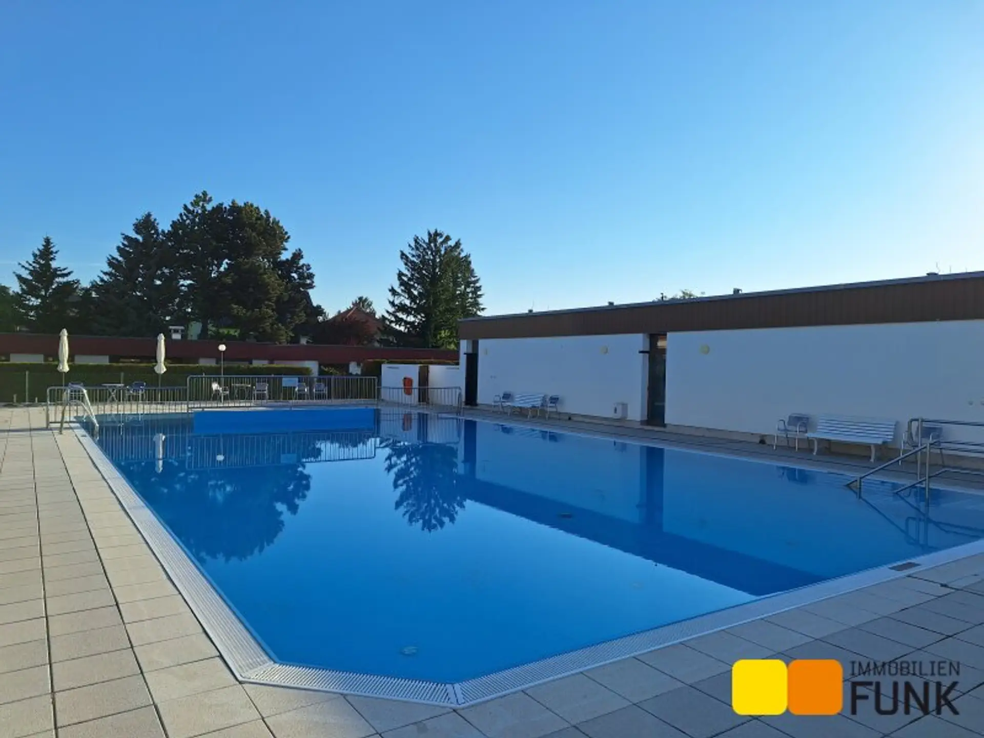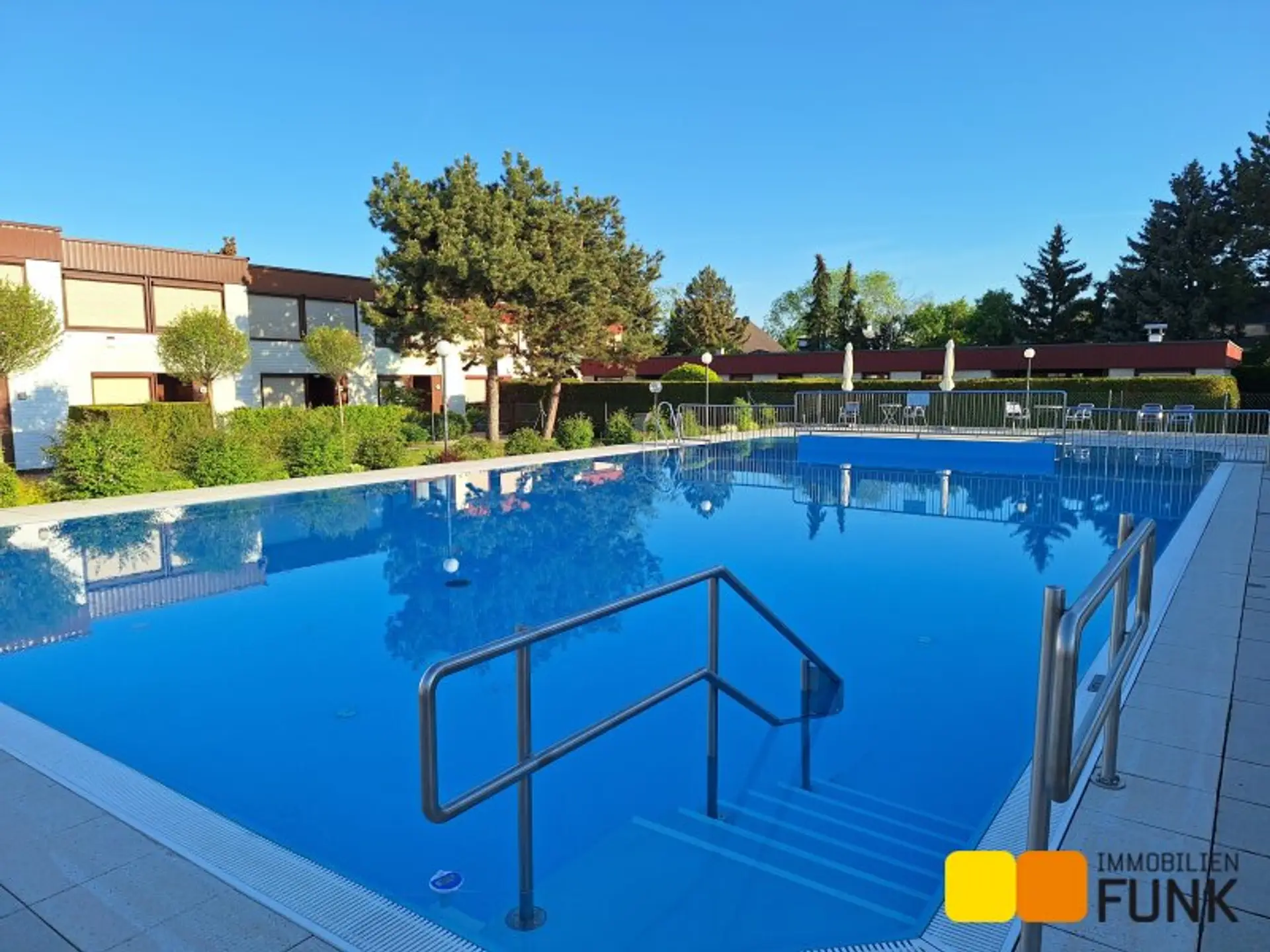 In der Wohnanlage stehen ein Swimmingpool und eine Sauna zur gemeinschaftlichen Nutzung bereit. Beides erreichen Sie über einen direkten Zugang innerhalb der Siedlung.