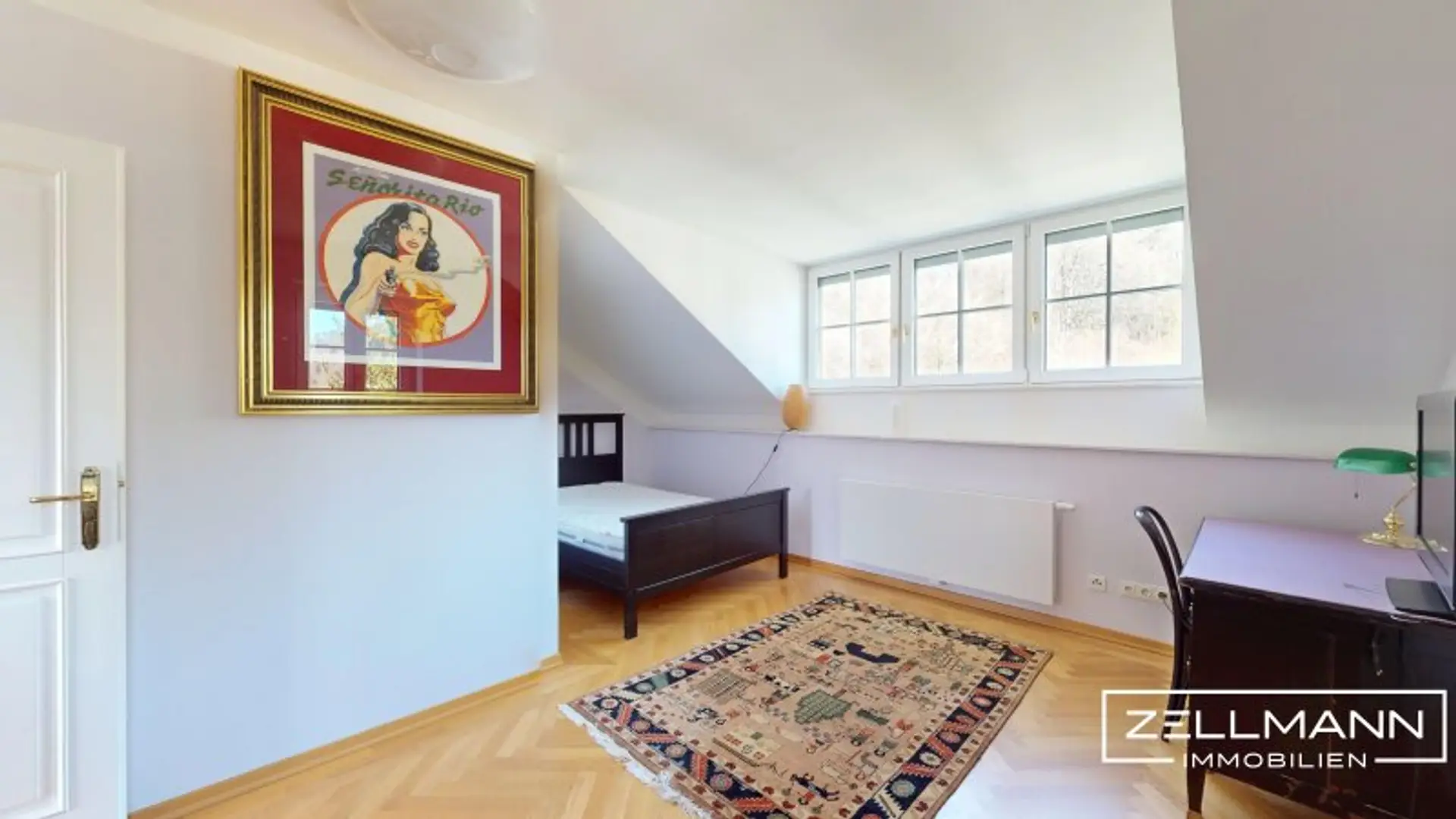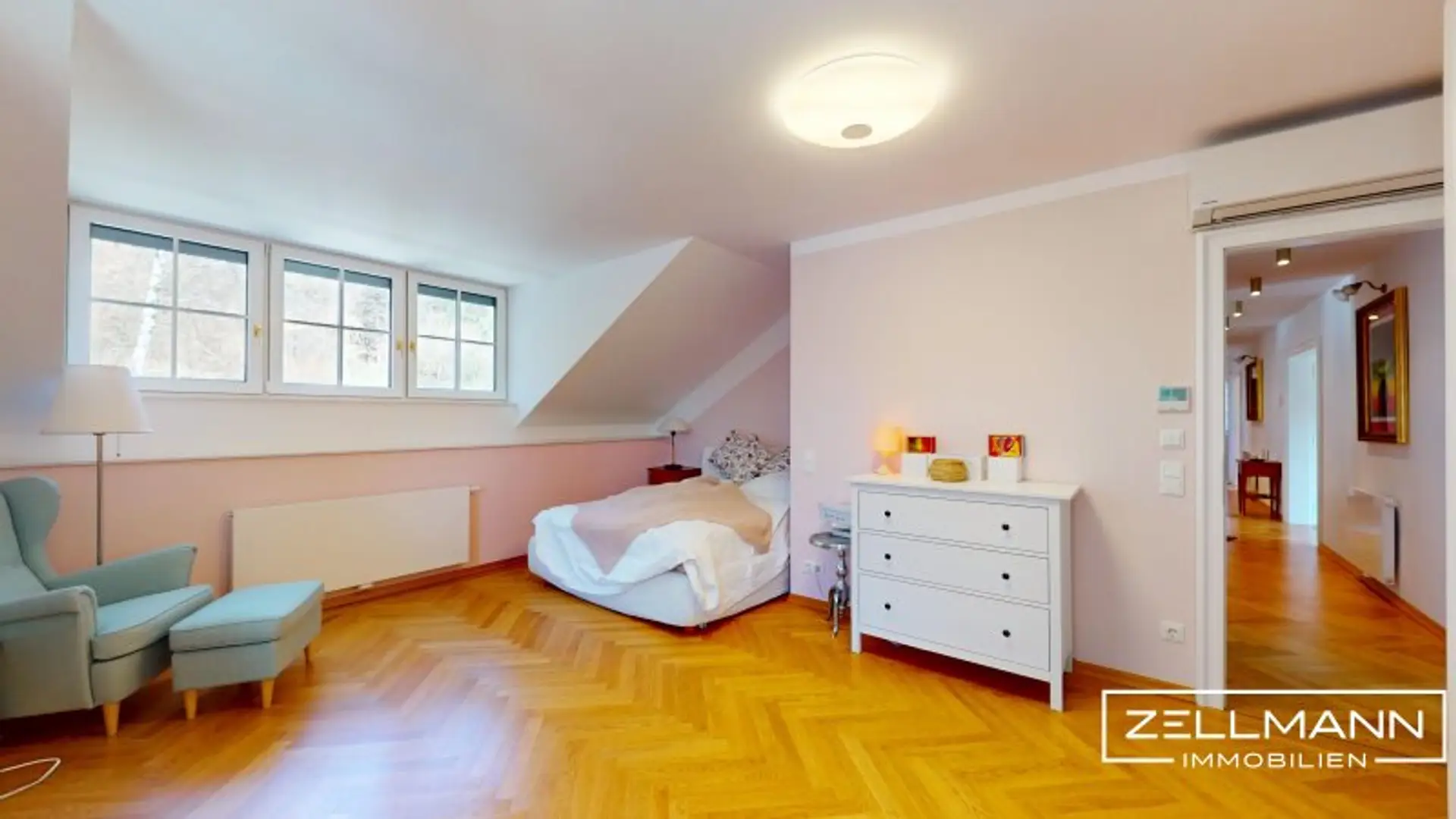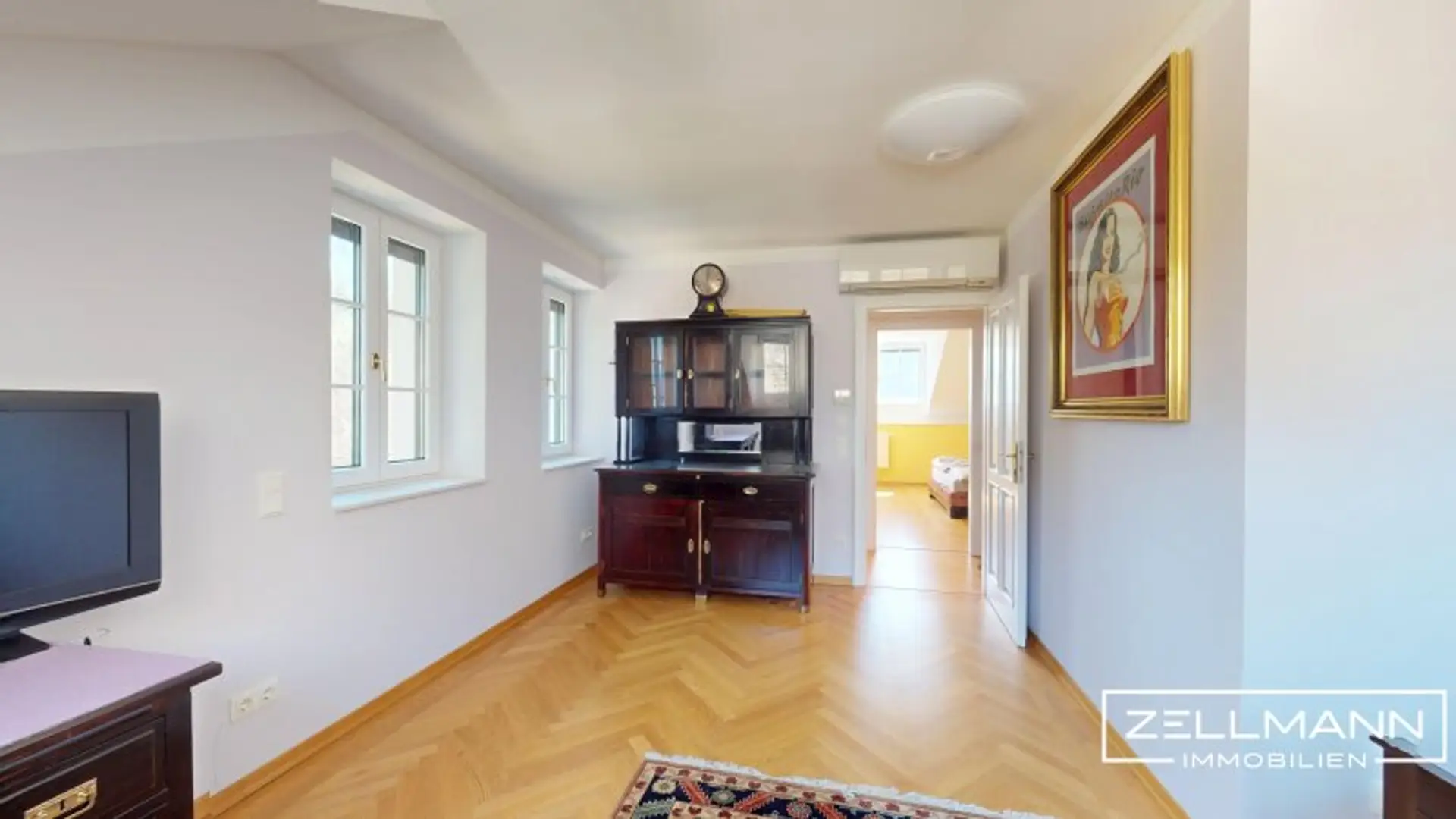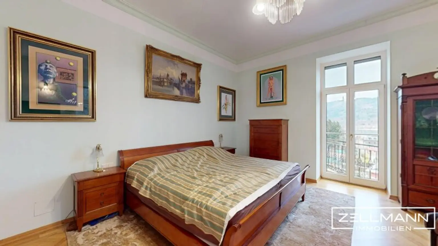 4 Zimmer · zentral begehbar . großzügiges Süd-Zimmer (ca. 33 m²) mit Balkon (ca. 11 m²), ideal als Masterbereich oder Wohnsalon · 2 Badezimmer · separates WC