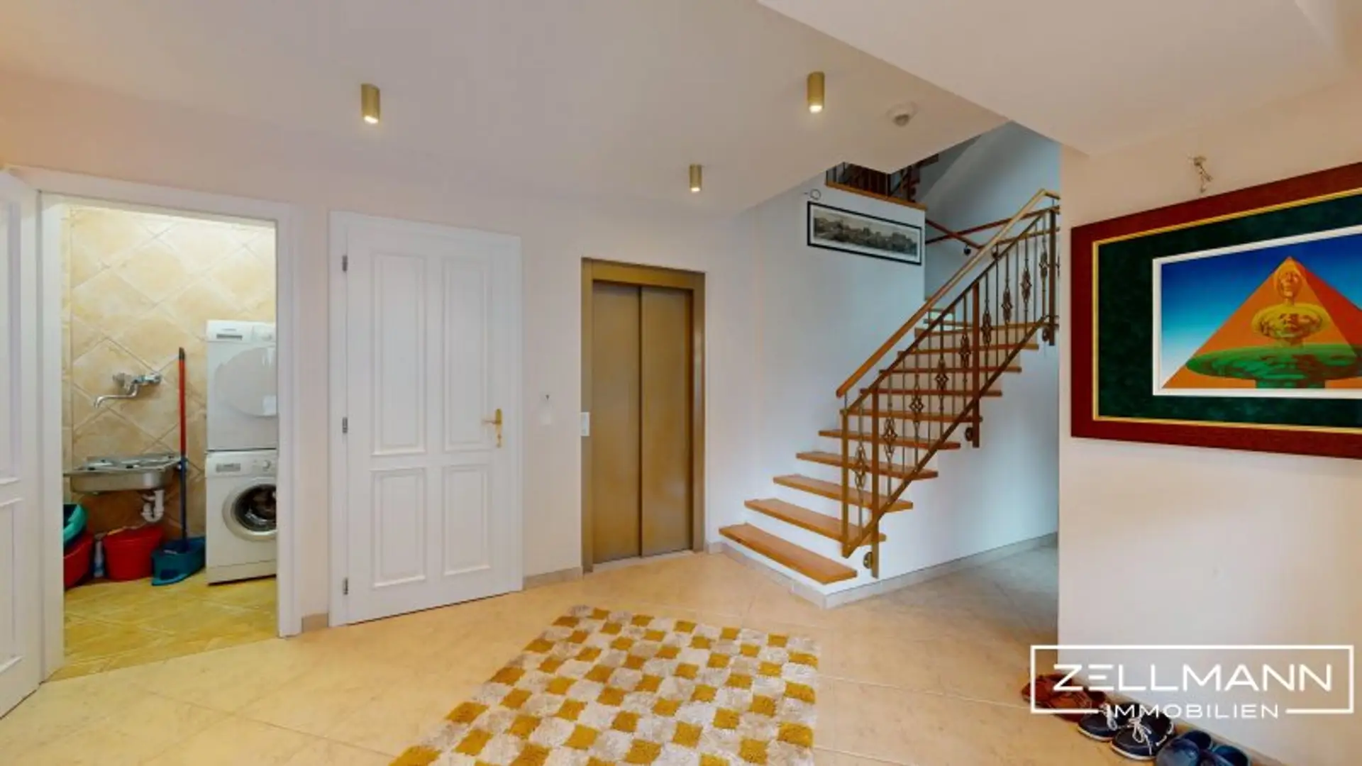 Ein besonderes Highlight ist der Personenaufzug, der alle Ebenen komfortabel verbindet und das Haus auch für Personen mit eingeschränkter Mobilität ideal nutzbar macht.