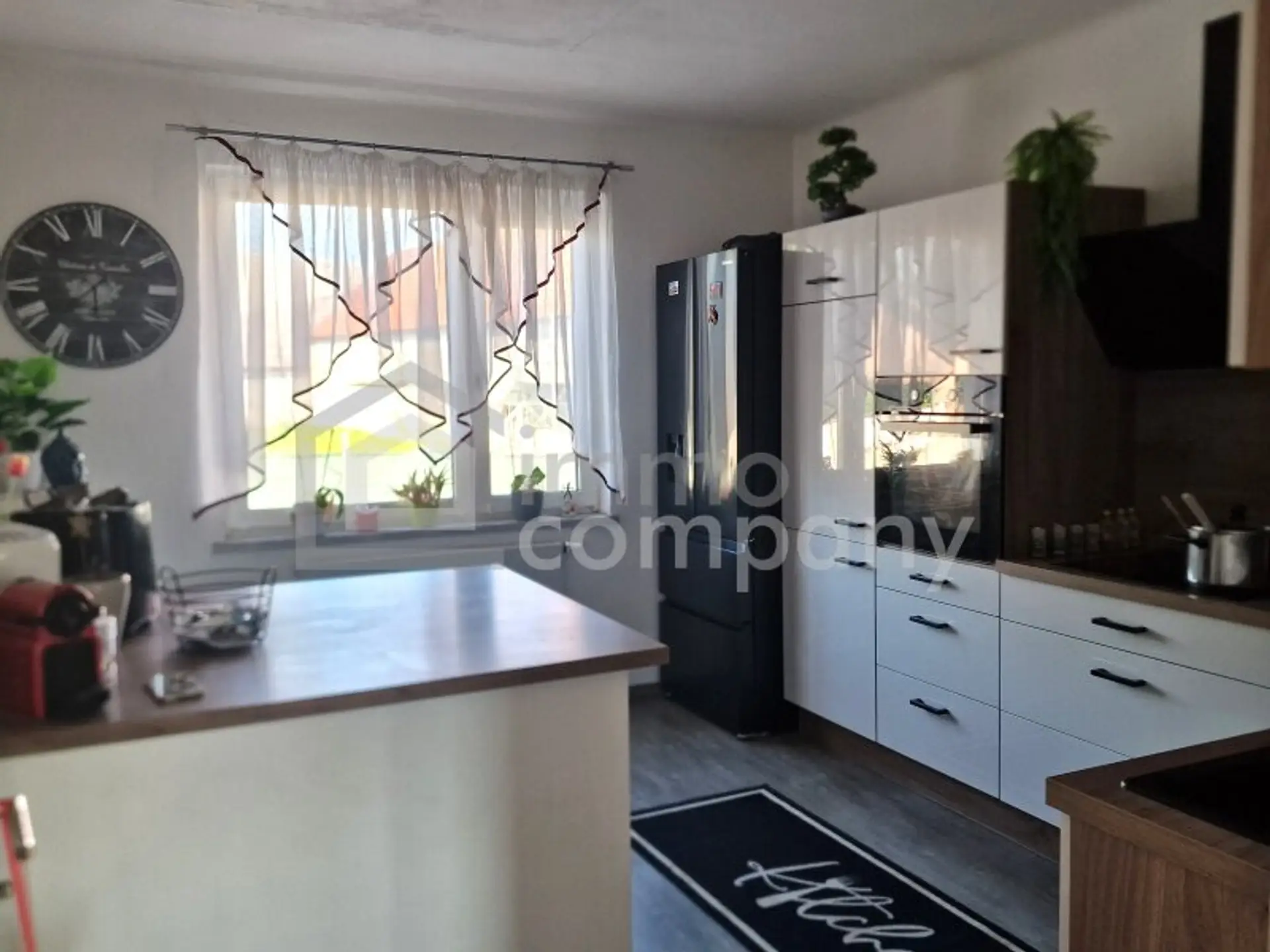 Die Innenräume überzeugen durch eine gelungene Kombination aus stilvollen Fliesen und warmem Laminat, die eine einladende Atmosphäre schaffen. Die moderne Einbauküche ist mit hochwertigen Geräten ausgestattet und bietet ausreichend Platz, um kulinarische Köstlichkeiten zuzubereiten. Der lichtdurchflutete Wohnbereich lädt zu geselligen Abenden mit Familie und Freunden ein und schafft Erinnerungen, die ein Leben lang halten.