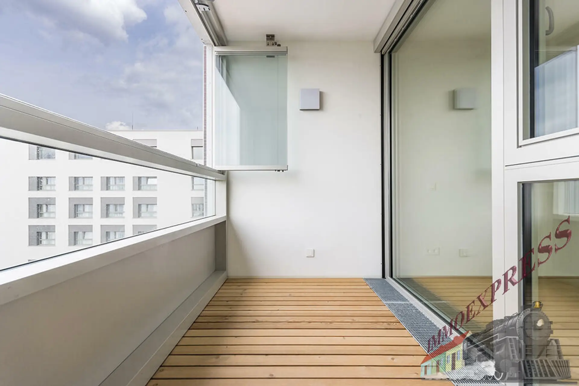 ein großes 25,00 m² Wohnzimmer mit offener Küche und Zugang auf die Loggia