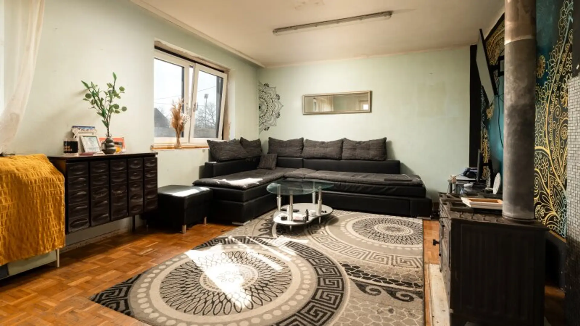 Im Wohn-Essbereich befindet sich ein zusätzlicher Ofen