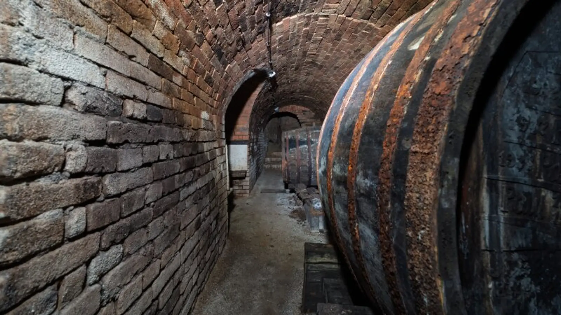 Im Eingangsbereich befindet sich ein klassischer Presshausbereich mit mehreren Räumen. Über einen Treppenabgang gelangt man in die beeindruckende Kellerröhre, in der sich noch alte Weinfässer befinden.