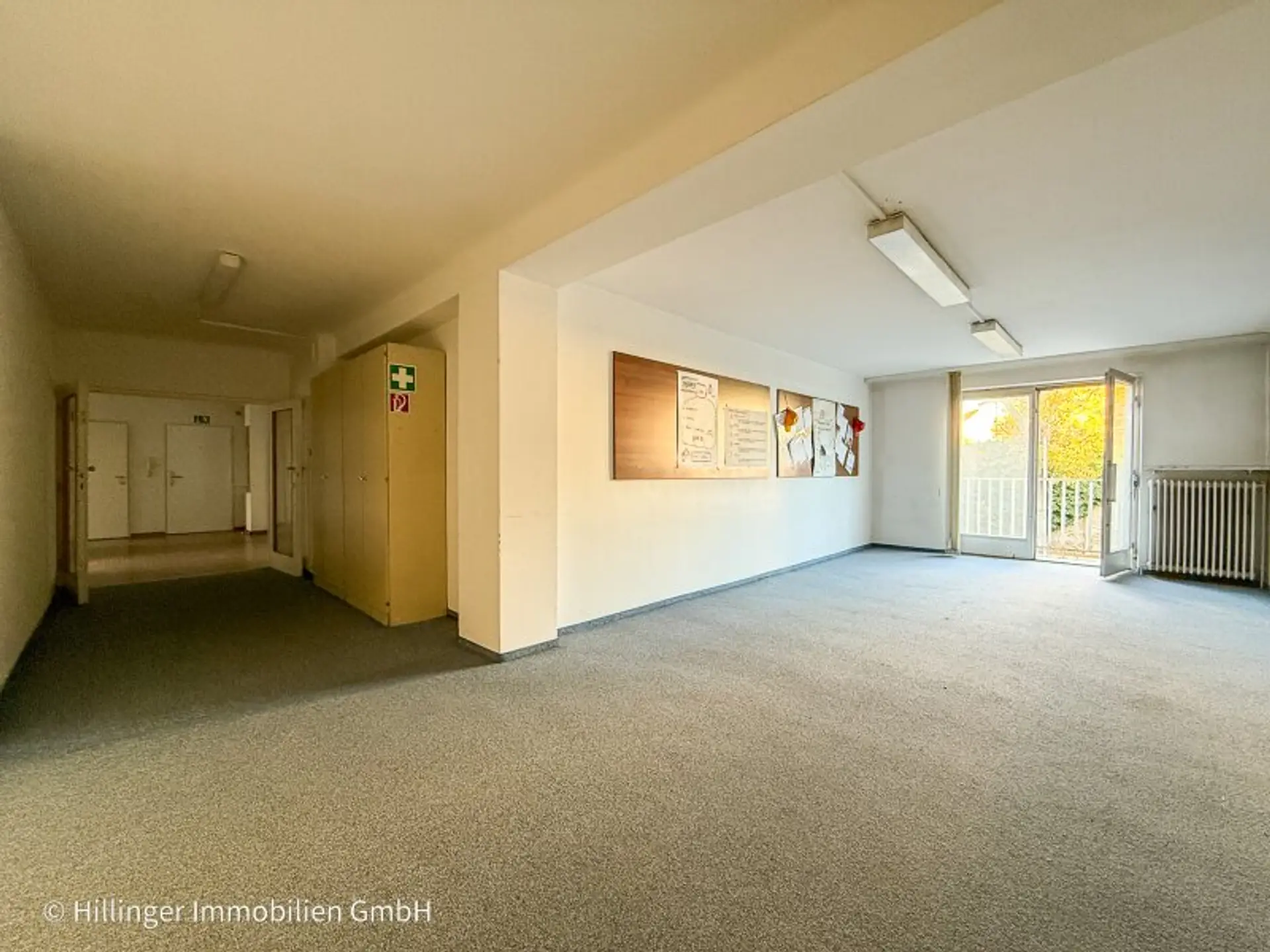 Derzeit in zwei große Zimmer, separate Küche, WC, Bad und Abstellraum unterteilt, bisher als Büro genutzt.