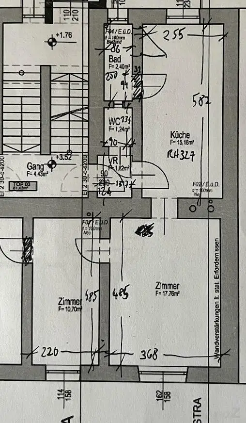 Vorraum, WC, Küche (möbliert), Bad, 2 Zimmer.