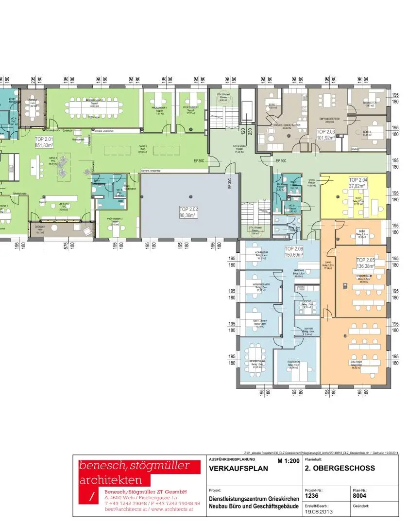 Die Einheit Top 2.06 im 2. Obergeschoss verfügt über eine Nutzfläche von 150,60 m² und bietet vielseitige Gestaltungsmöglichkeiten für Büro-, Praxis- oder Dienstleistungsnutzung.