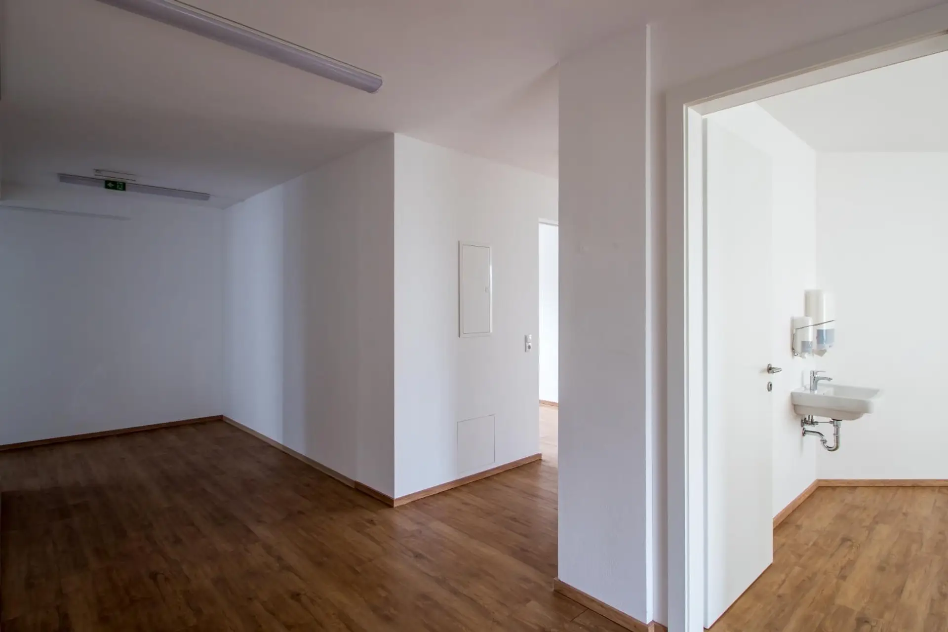 Das Mietobjekt verfügt über mehrere abgetrennte Bereiche, Dusche/WC, Empfangs- und Wartebereich.
