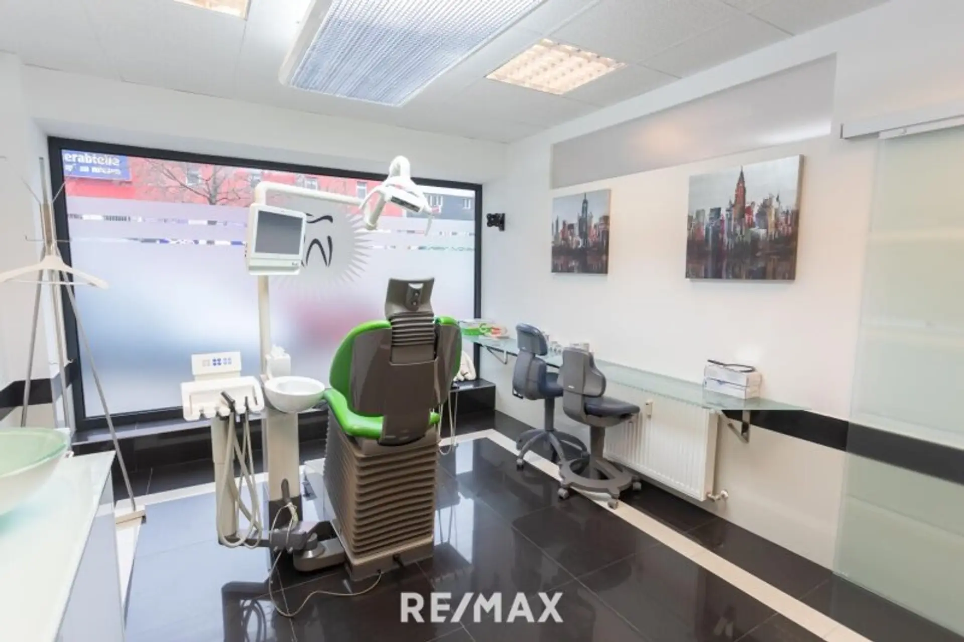 Die Rezeption ist vis a vis vom Eingang und ein geräumiger Wartebereich steht den Patienten zur Verfügung. Die notwendigen Installationen wurden genau auf den Betrieb einer Praxis im Lokal abgestimmt.
