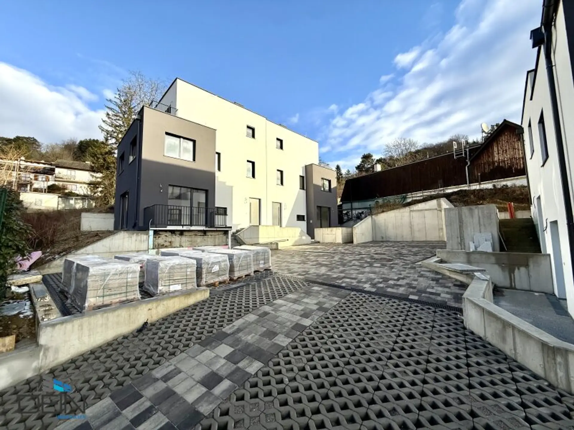 Zum Verkauf gelangen sechs derzeit in Bau befindliche 4-5 Zimmer Doppelhaushälften mit Freiflächen in Weidling.