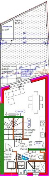 RH1/4A: 4 Zimmer, GESAMTFLÄCHE ca. 161,18 m² davon Wohnnutzfläche ca. 112,05 m² + Terrassen ca. 14,44 m² + Garten ca. 34,69 m², zwei PKW-Stellplätze, EURO 469.000,00