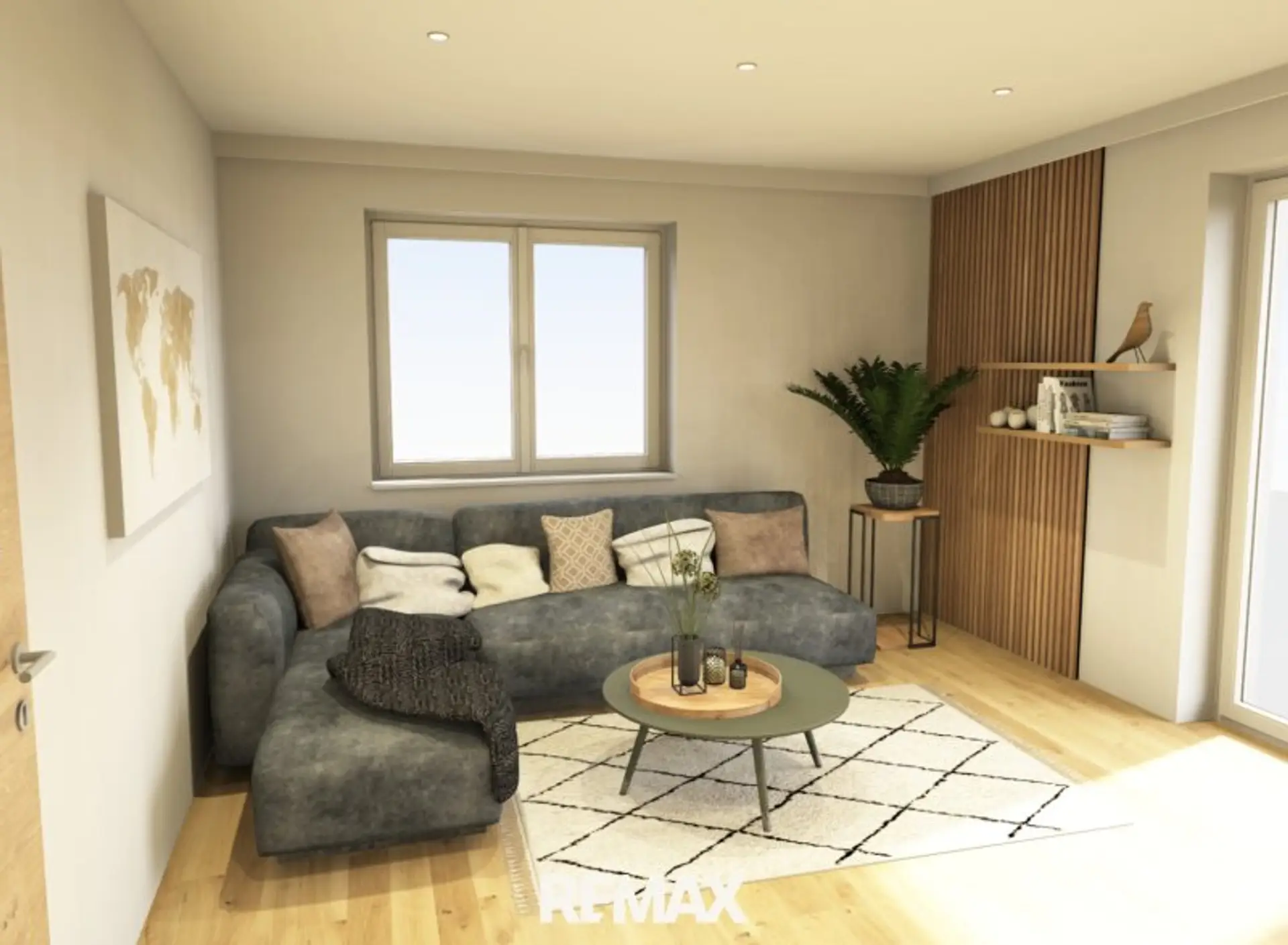Das Gebäude wird 2026 auf Klimaaktiv Standard Saniert. Die Wohnung umfasst, Vorraum, Bad mit WC, Abstellraum, Küche-Essen-Wohnen, Schlafzimmer, Kinderzimmer oder Büro. Es sind alle Einheiten nach Süden ausgerichtet und verfügen im 1. Obergeschoss über einen Balkon, im Erdgeschoss über eine Grundanteil.