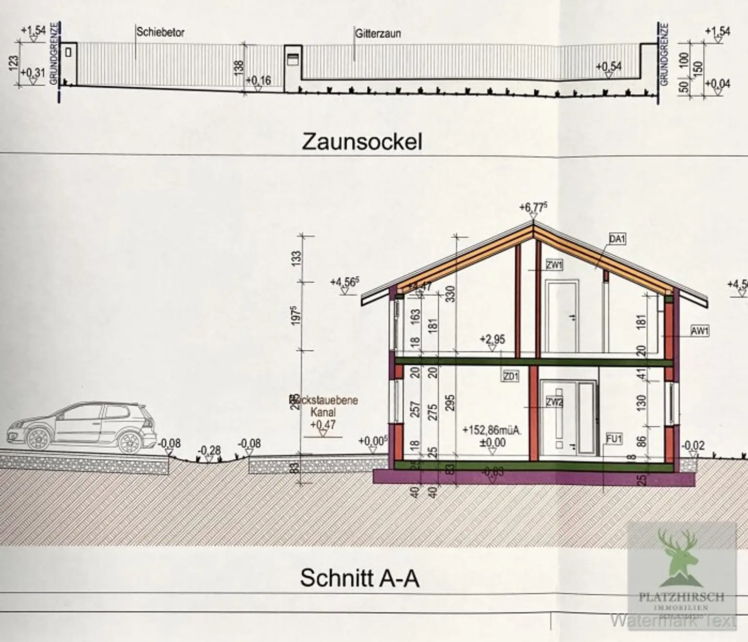 Laut Flächenwidmungsplan (MBF) dürfen 150 m² + 4 % der Grundstücksfläche verbaut werden.