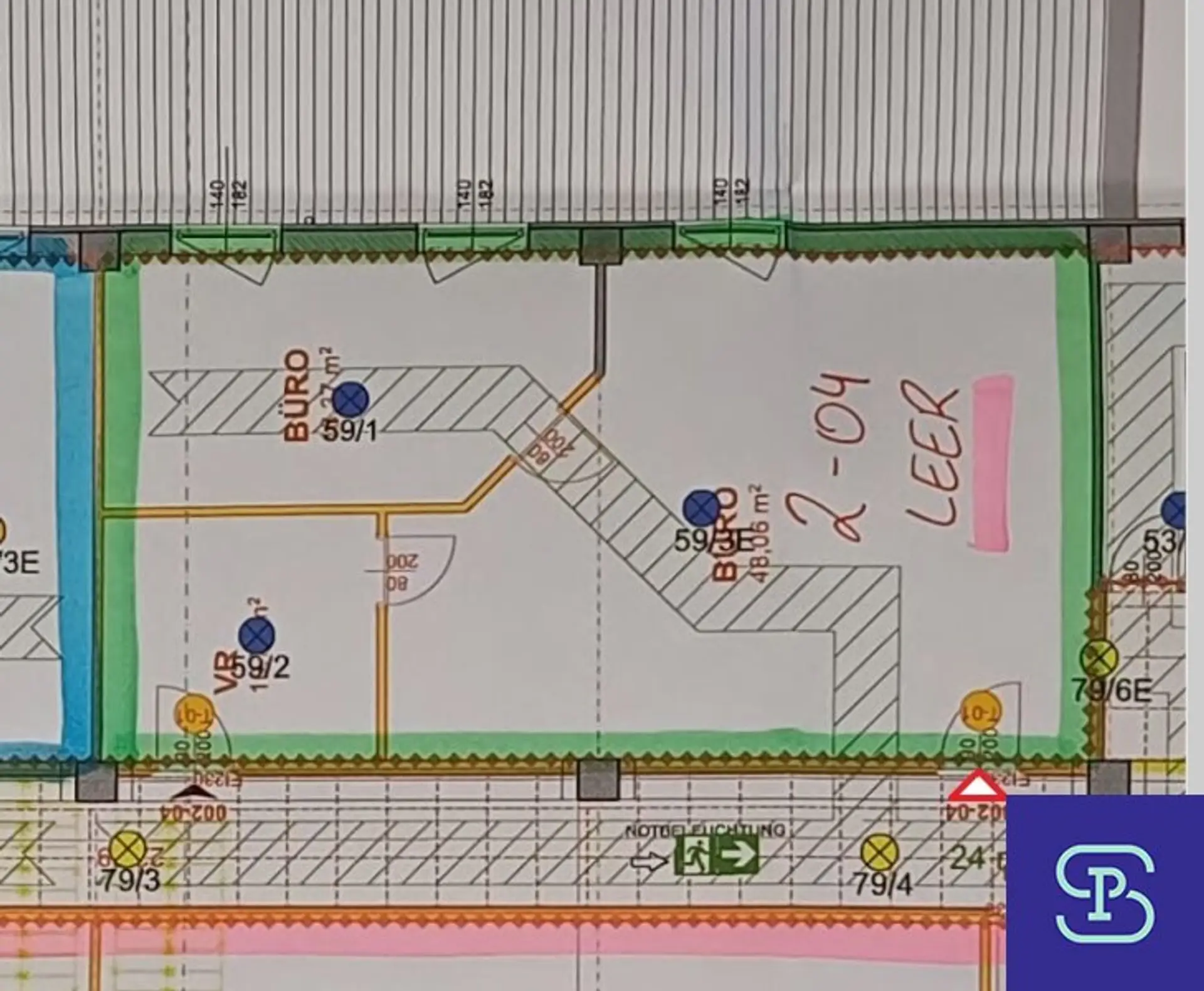 Ausstattung: Büroeinheit wie abgebildet mit Hauszentralheizung, Lift, Gemeinschaftsküche, Sanitäranlagen mit WC und Dusche zur Mitbenutzung, große Gemeinschaftsterrasse, Parkplatz,.