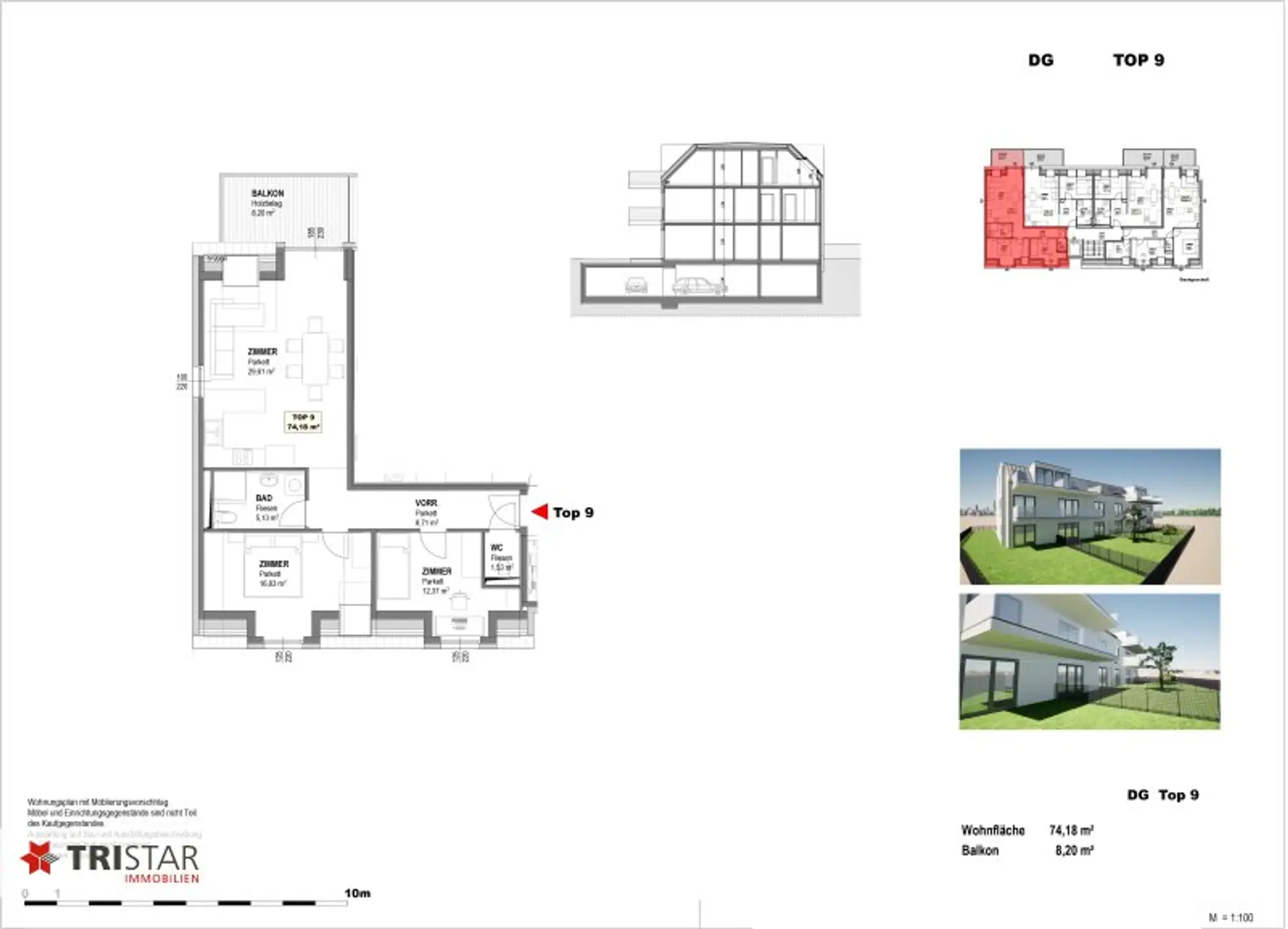 Top 9 (3-Zimmer-Wohnung), gewichtete Fläche: 78,28 m² | Kaufpreis Eigennutzer: € 443.000 | Anlegerpreis netto: € 398.700 | Brutto inkl. 20% MwSt: € 478.440