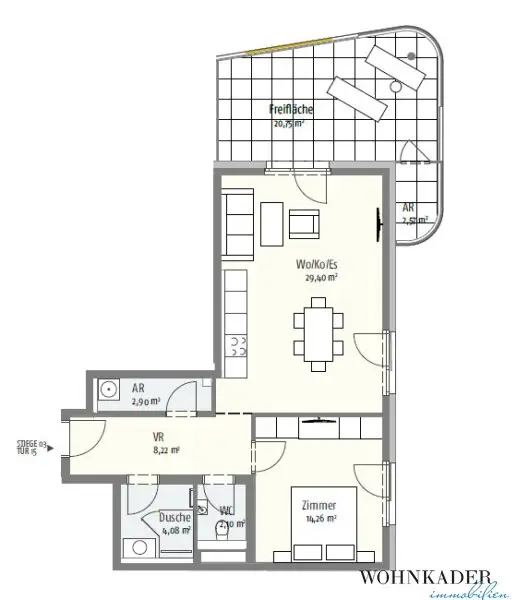 Die Wohnung überzeugt durch eine durchdachte Raumaufteilung, die modernes Wohnen mit hoher Funktionalität kombiniert. Der zentrale Wohnbereich umfasst eine stilvolle Wohnküche mit brandneuer Einbauküche und hochwertigen Geräten. Das gemütliche Schlafzimmer mit großzügigem Einbauschrank, das elegante Badezimmer mit Dusche sowie ein praktischer Abstellraum ergänzen das attraktive Raumkonzept.