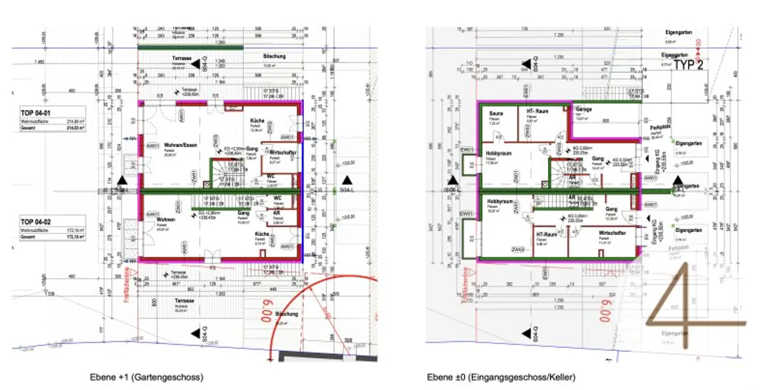 Bauplatz 4 ca. 850 m² Grundstück | ca. 387m² Wohnnutzfläche möglich | Eigengärten bis ca. 323,7 m² gesamt